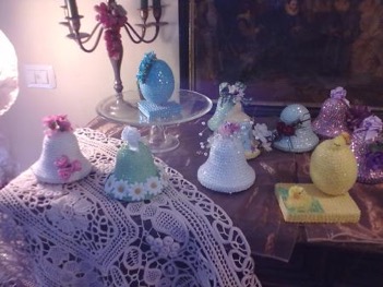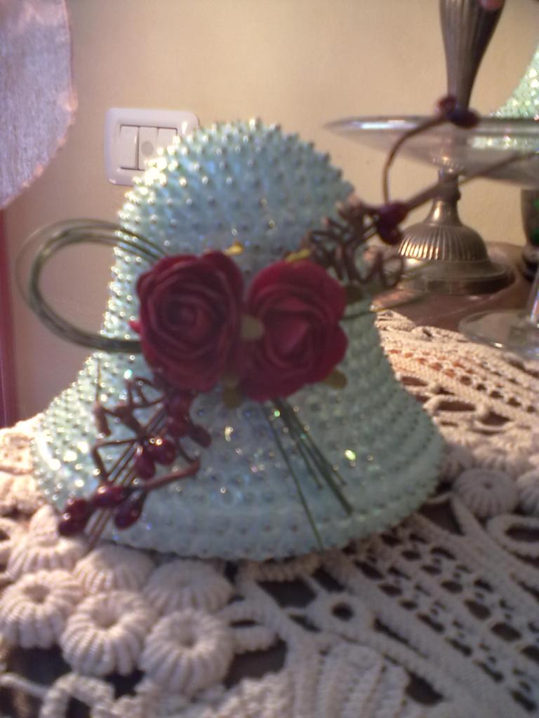 In questo post vorrei mostrarvi alcuni dei miei lavoretti. Si tratta di alcune Campane in Polistirolo nelle quali, con molta pazienza, ho inserito degli spilli con delle perline trasparenti e delle