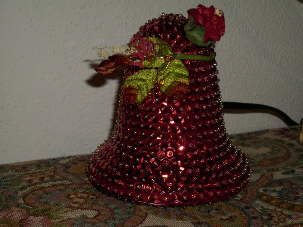 These Polystyrene Bells with patience I have put in spins with transparent beads and Paillettes in various colours.
