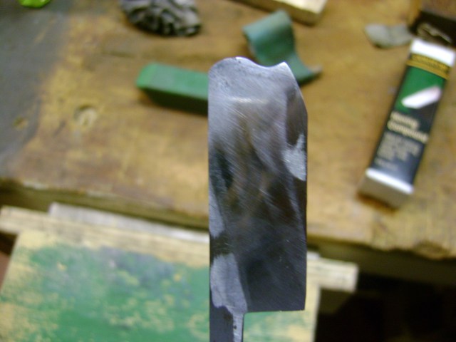 F) Cutting edge. The cutting edge is the end of the blade, which actually planes the wood by producing the shavings. It is usually sharpened to 25 degrees (bevel) but often a 30 degree (microbevel) bevel is created. Commonly, the cutting edge is bevel down but, on certain types of plane, the cutting edge is bevel up. We will talk about that on future posts.