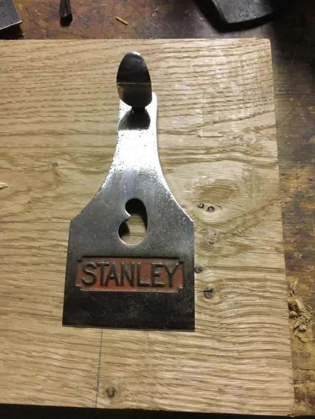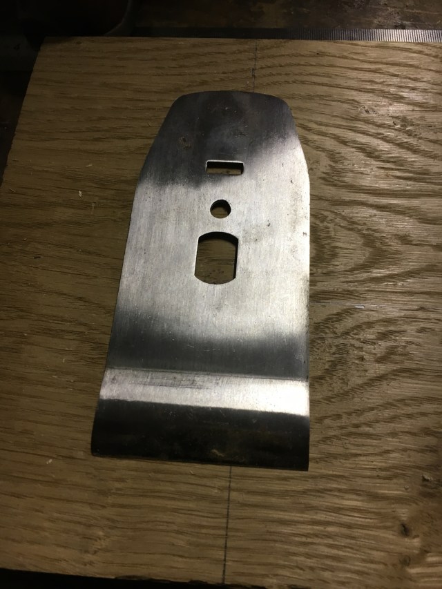 G) Controferro. Il controferro (cap iron) è fatto di un metallo meno duro di quello usato per la lama. La sua principale funzione e’ quella di rompitruciolo ma funge anche da sostegno alla lama stessa dando rigidita’ in fase di taglio. Viene montato sulla lama mediante una vite e presenta un’ apertura che permette l’inserimento di una forcella che governa, mediante la rotella posta sul retro, la regolazione in altezza di tutto il gruppo di taglio. Solitamente il controferro viene posto a pochi millimetri dal tagliente della lama. La sua regolazione, così come l’affilatura del tagliente e la regolazione del frog, varia a seconda del lavoro da fare e delle preferenze personali.