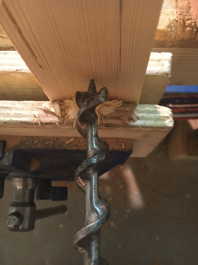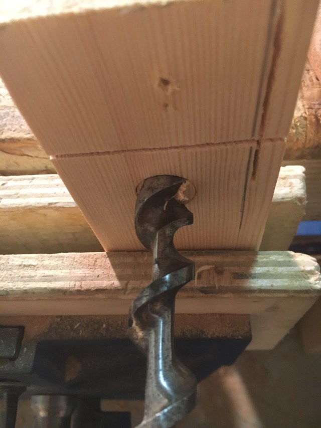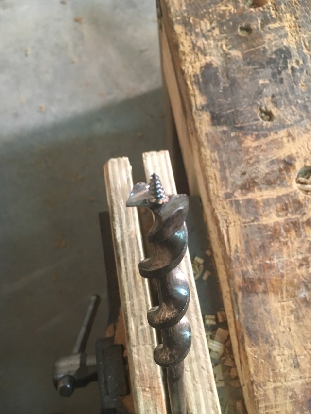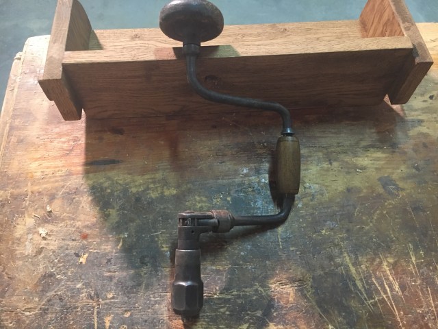 The brace is the forefather of modern drill. It was used to make holes in the wood varying in depth and size and it was an absolute essential tool, the only one together with the hand drill (who will talk about in a future post) able to make the drilling of the wood. But more than other tools has suffered the modernization process that replaced them with power drills. It’s true that power drills are faster and more handful but I find that brace still has its validity and functionality together with an undeniable vintage charm. In my works when I need precision, control and clean holes I reach for the brace preferring it to the modern drills mostly when I have to make bigger and deeper holes. Brace has its strenghts in silence, precision and not needing electric energy. An always ready tool only sometimes needing some oil to lubrificate. My brace isn’t of a famous brand but for a purchase I could suggest Stanley braces searching them on the large Ebay market. A famous brace maker was Miller Falls but they are a little expensive comparing to Stanleys and I don’t thing it worth to spend so much money. I also suggest to search for wooden handled ratchet braces but not the oldest (made of wood or wood and metal) nor the modern ones (many with plastic handles), the first because it’s difficult to find the bits and the modern braces because I like vintage.I own a very common 25 cm. long brace but does exist smaller and larger braces. The brace has a wooden handle on the top (the Pad), a metal frame, another wooden handle (the Sweep handle), a metal mechanism where you can insert the bits (the Chuck) and the Jaws, that keep close and tight the bits. The brace is used with both hands and it’s very simple to use. With the dominant hand you keep the sweep handle and with the other hand the pad. Further with a circular clockwise motion the bit deepen in the wood making the hole. Counterclock motion retract the bit from the wood. During the drilling the upper body, hands and shoulders are engaged, putting some strength and pressure. With a little practice everything will be simple. Maintaining the efficiency of the brace is simple as said above because you only have to put some drops of mechanics oil in the little holes near the pad and the ratchet. When you bore the wood you have to check that bits are straight, without rust and sharpened. The handles has to rotate free and the bits held securely in the jaws. With the chuck in one hand we rotate the brace to enlarge the jaws and put the bit. Keeping the bit straight we rotate the brace to close the jaws to stop the bit in the chuck. Usually the brace has two jaws but does exist braces with four jaws. The jaws have the aspect of a crocodile mouth and allow the bits to be put directly into the lock mechanism. Before drilling remember to maintain the brace and the bit perpendicular to avoid a skewed hole. The feed screw on the very top of the bit is similar to a wood screw advancing in the wood the first. Then the cutting spurs and the lips cut the wood in a circular motion (so it’s a cross and long grain cut) defining the perimeter of the hole. Proceeding I n the wood the spirals on the stem lift the waste wood. When the feed screw appears on the other side of the piece of wood it’s a good thing to rotate and to bore on the other side to prevent any break. Another method is to put a sacrificial piece of wood to substain the fibers. When you buy a brace you have to consider to buy some bits, the so called auger bits. You can buy them separately or in a set, usually formed of 13 bits. The brace bits are of a particular shape. There is a feed screw on the top (very difficult to sharp), two cutting spurs and cutting edges on the first spiral. On the stem of the bit there are spiral twists and at the end the shank and the tang. The tang can be of various shapes, my bits are four square tang suitable for my two jaws brace. We have to pay attention when buying the bits. The feed screw, the cutting edges and the spurs has to be in good condition even if we can re sharpen them (but not the feed screw) together with no rust and a straight stem as I said above. The important thing is to prevent a dull cutting edge because the bit won’t work well and it will take longer time to re sharpen them. But this simple advices are useful for any tool you own. The sharpening of the bits may seem complex but in practice it is not, resulting even quite fast. We place the bit slightly inclined in the bench top and with the screw point facing towards us. With few and light passes we define both the already formed cutting edges or we create a new one by slightly changing the inclination of the file, until we feel with the fingers that the burr has formed on the back of the cutting edge. We also sharpen the spurs slightly, but only in the part closest to the cutting edge. The important thing is not to sharpen the cutting edge on the wrong side, otherwise the functionality of the bit will be compromised almost irreversibly and the spurs not to be rounded on the outside, so as not to change the bit diameter. You can sharpen the cutting edges and the spurs with a simple little file. You can insert other types of bits in the brace such as screwdrivers bits, countersink bits, spur bits and so on but because of their modern round stem you have to be careful that they won’t grip as well as the dedicated bits. Working with the brace is really fascinating and if you love woodworking by hand you don’t have to miss such a beautiful and useful tool.