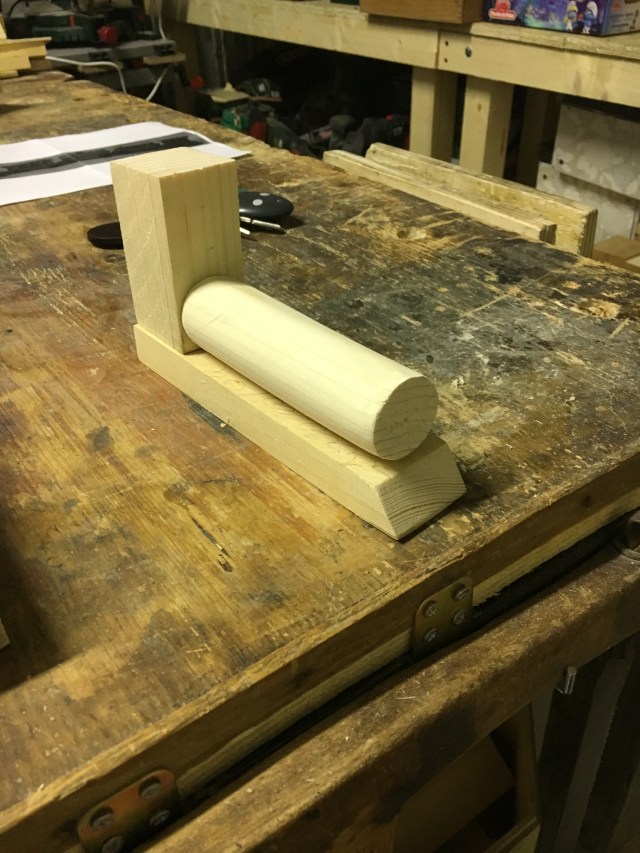 Il successivo è il vagone portacombustibile. La sagomatura del cilindro mi ha portato via un pò di tempo perché non volendo usare strumenti elettrici come il tornio, ho provveduto con pialla e vastringa e successivamente con raspe, lime e carta abrasiva sino ad ottenere l’effetto desiderato (lo stesso procedimento l’ho utilizzato per il vano caldaia della locomotiva). Sopra il cilindro ho praticato un foro ed inserito un legno di forma sferica per rappresentare l’apertura del vano portacombustibile. Sotto al cilindro infine ho posto due rialzi incollati tra loro e successivamente due perni che permettono l’unione dei vagoni mediante dei semplici gancetti in ferro.