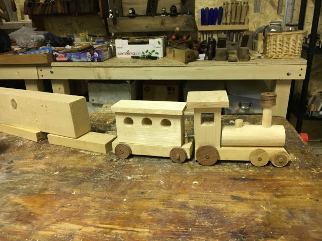 Allego sotto alcuni scatti delle fasi della lavorazione del trenino (purtroppo dell’aeroplanino ho solo le foto finali).
