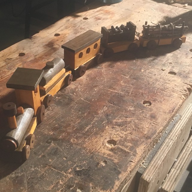 bambini ed è a loro che ho pensato quando, qualche mese fa, ho voluto sperimentare qualche piccolo lavoretto nel campo dei giocattoli. Ho realizzato quindi un piccolo aeroplanino (rimasto allo stato grezzo) ed un trenino del west. Entrambi sono stati realizzati interamente con legno di abete riciclato da un vecchio pallet, qualche scarto di multistrato e poco altro. Materiale povero e a costo zero per ricordare che un tempo i giocattoli erano semplici, non essendo importante il loro valore intrinseco ma la fantasia e la gioia di chi ci giocava.