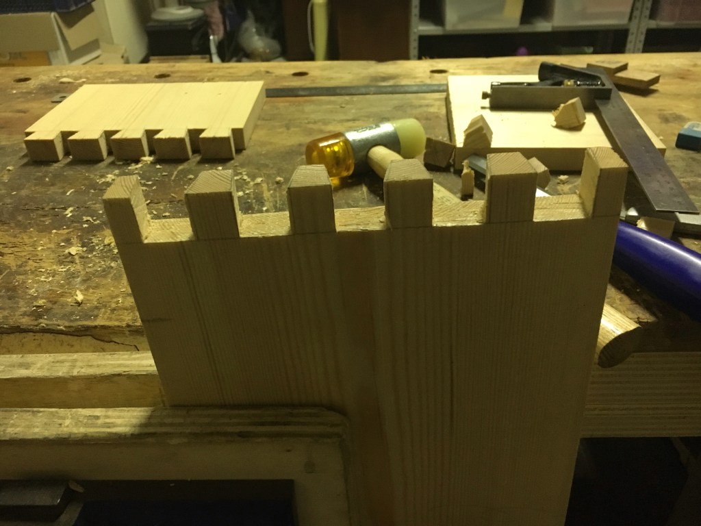 Per quanto ho potuto verificare gli utensili che maggiormente utilizzo per la quasi totalità degli incastri fatti a mano sono: flessometro (metro), matita, coltellino da tracciatura, squadra combinata e falsa squadra, truschino, sega per tenoni e code di rondine, scalpelli, martello, router plane (pialla per scanalature) e pialla n. 4 o n. 5.