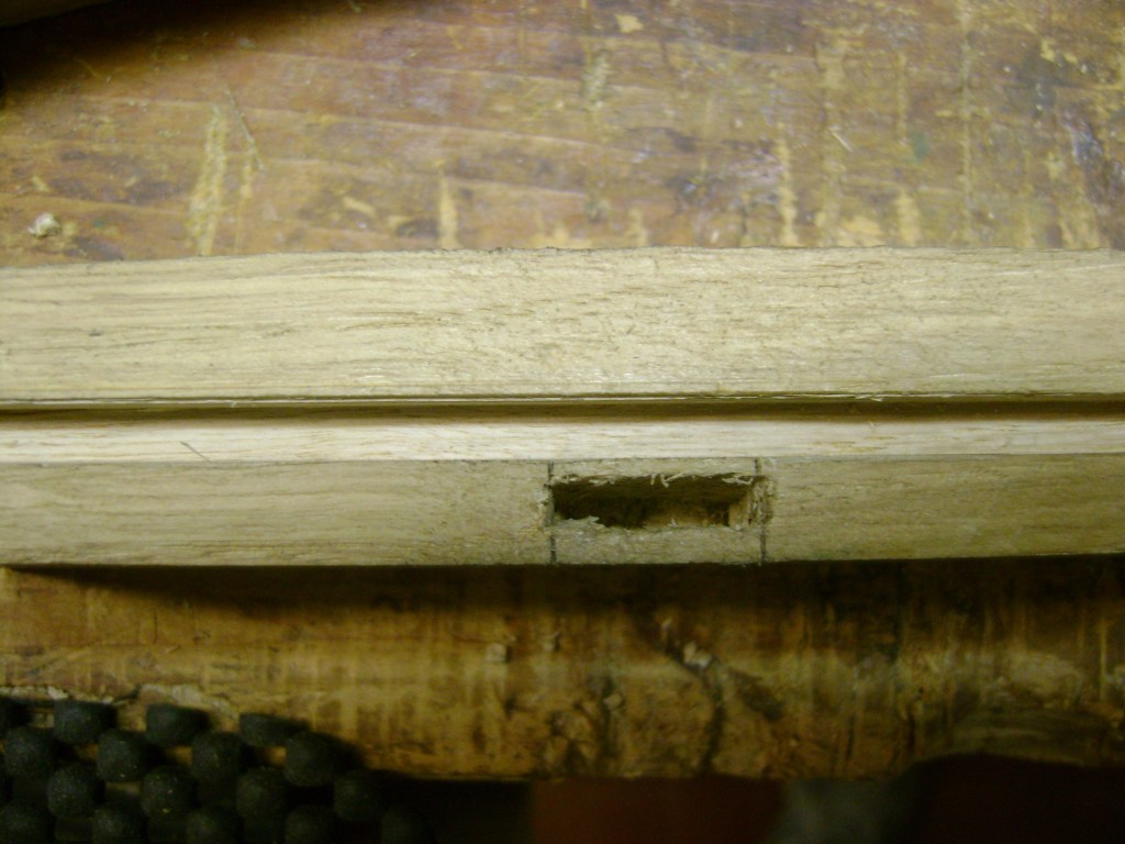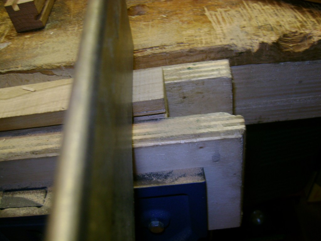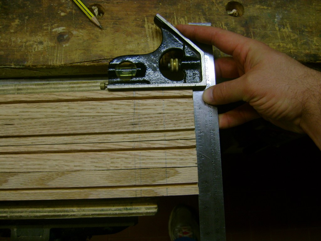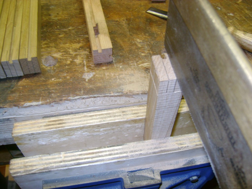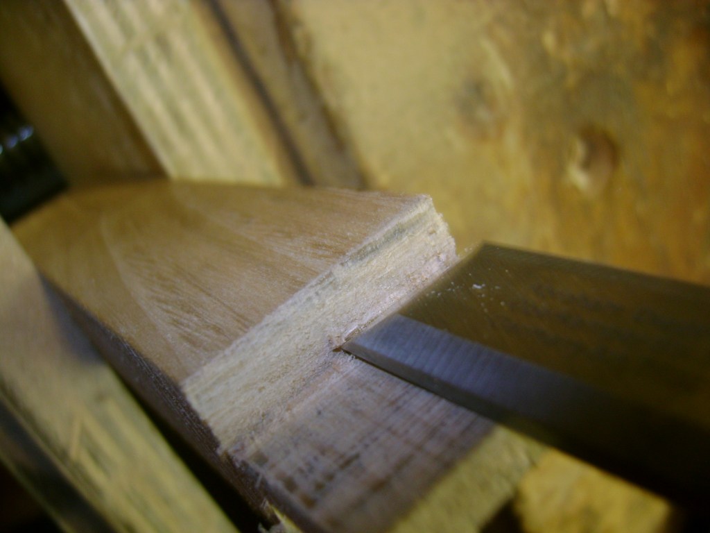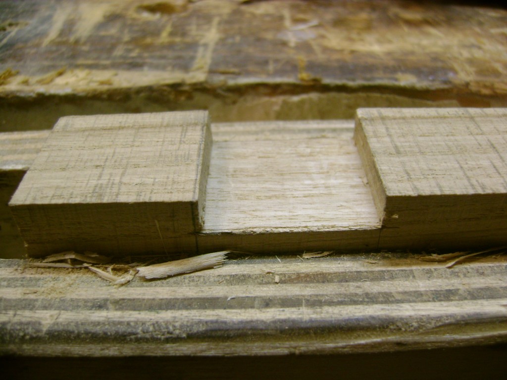 Sopra: operazioni di tracciatura e scavo ed incastro dei pezzi che formeranno lo sportello superiore della lanterna. I pezzi si incrociano a mezzo spessore.