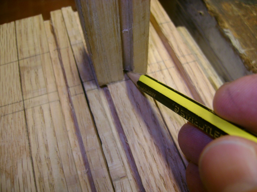 Sopra: operazioni di tracciatura preparatorie della successiva fase di scavo delle mortase.