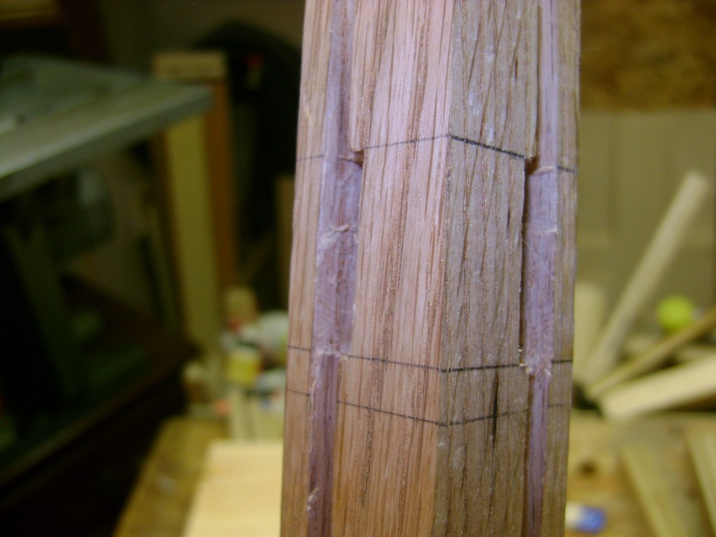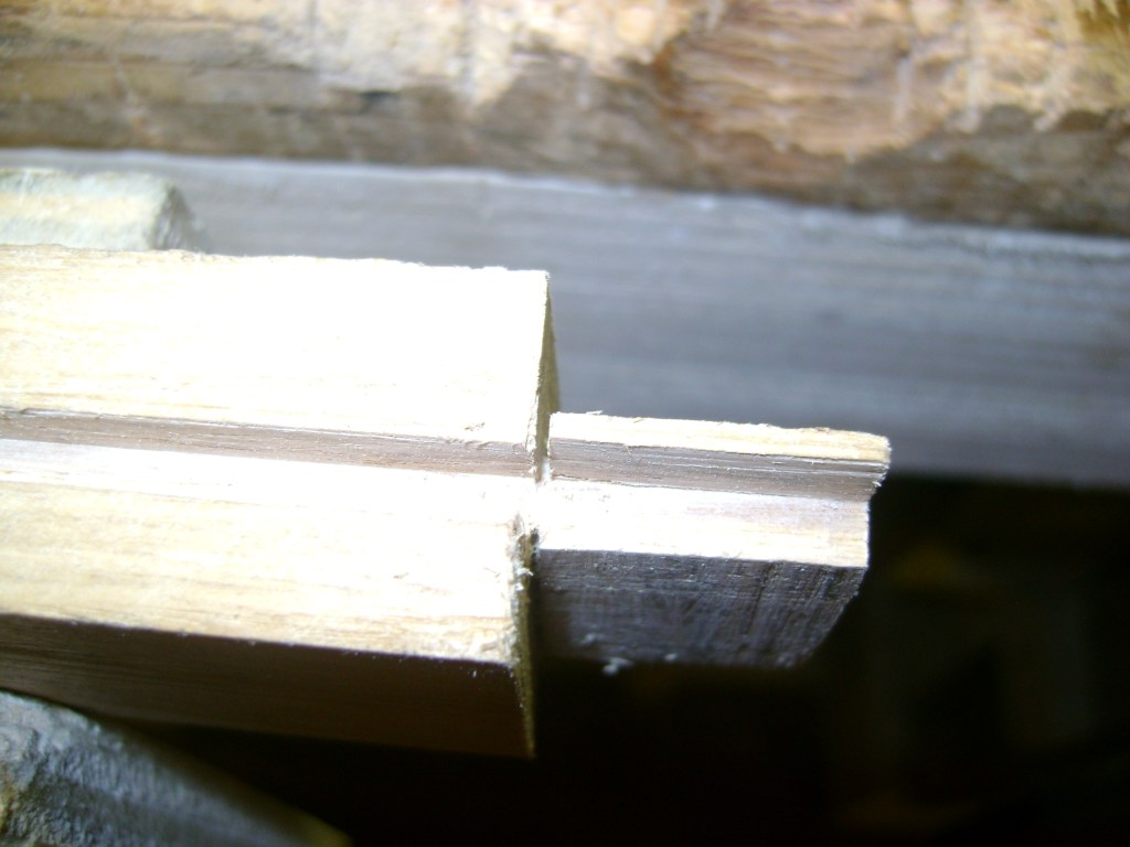 Sopra: come sono state tracciate e ricavate le mortase ed i successivi tenoni che formano le croci frontali della lanterna.