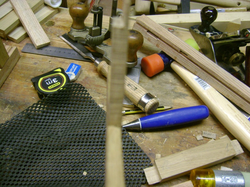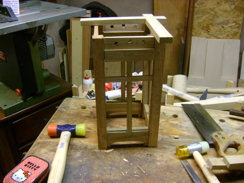 Prova a secco. I pezzi laterali sono stati opportunamente sagomati così da permetterne l’inserimento nei montanti.