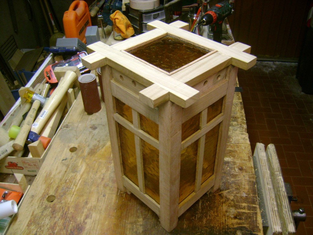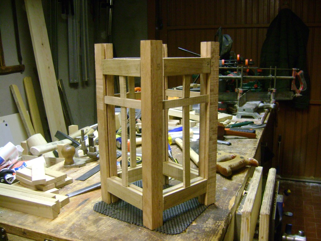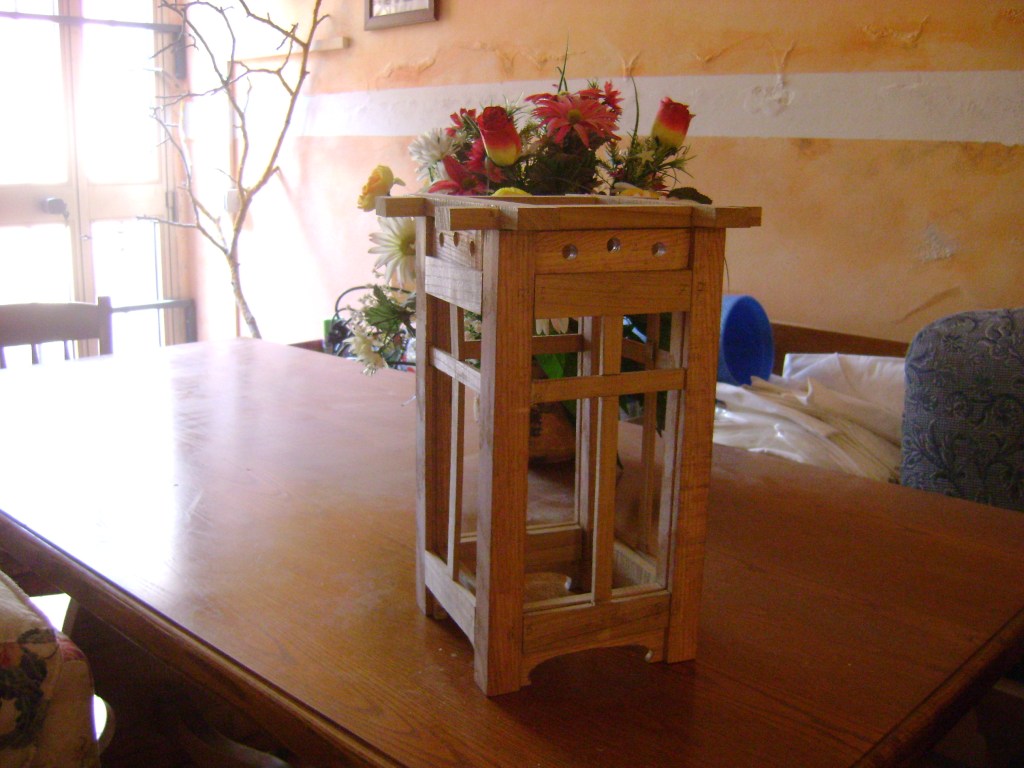 utilizzando aniline color noce. All’interno ho inserito un porta candela ma, volendo, lo si può modificare con un portalampadine, così da farla funzionare elettricamente. Si accede al suo interno mediante lo sportello superiore ribaltabile. Le misure finali della lanterna sono 30 cm. di altezza, 15 cm. di larghezza e 15 cm. di profondità. Il progetto originale è di Paul Sellers. Di seguito alcuni scatti eseguiti durante la fase di realizzazione.