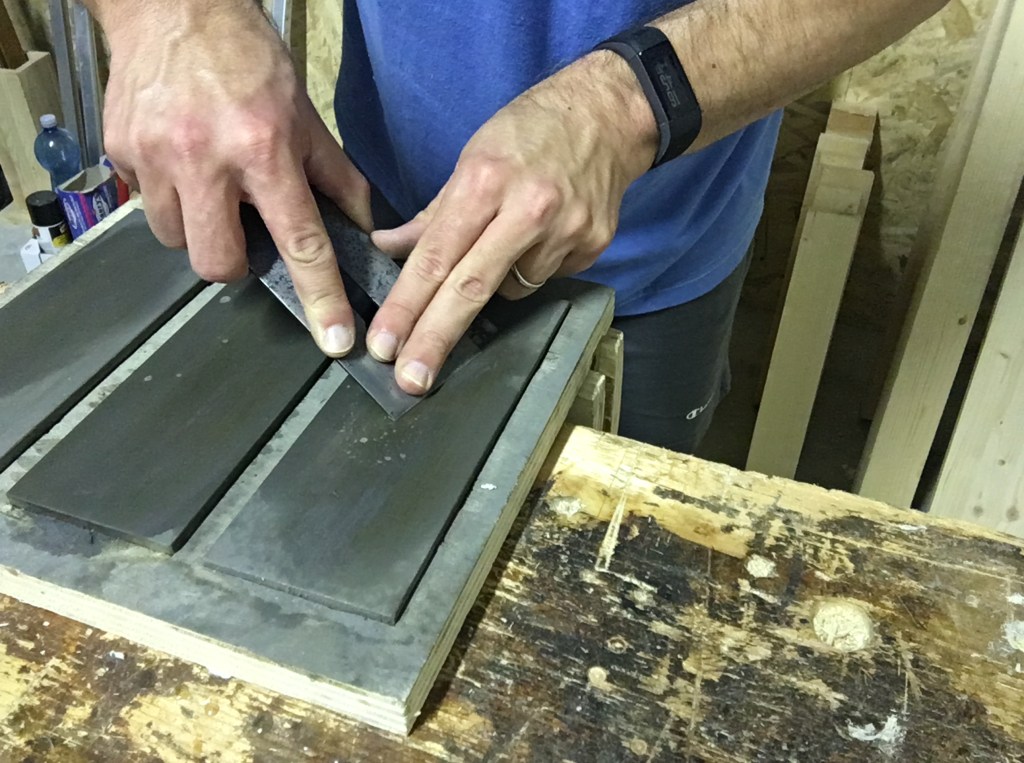 Al termine si passa alla lucidatura passandolo sulla pasta abrasiva. In quest’ultimo passaggio di solito applico la pasta abrasiva direttamente sul retro del supporto, quindi direttamente sul legno invece che sulla striscia di pelle.