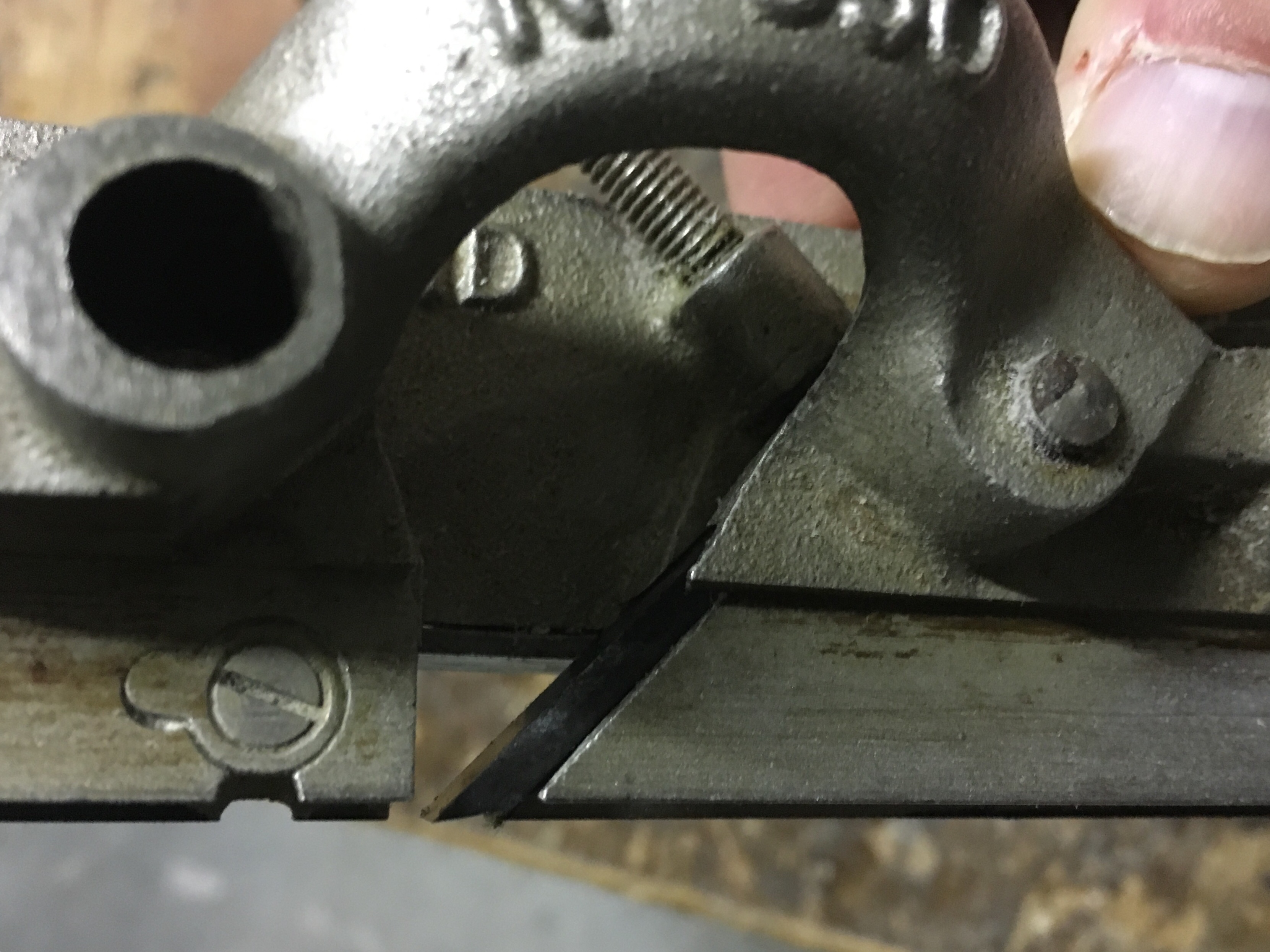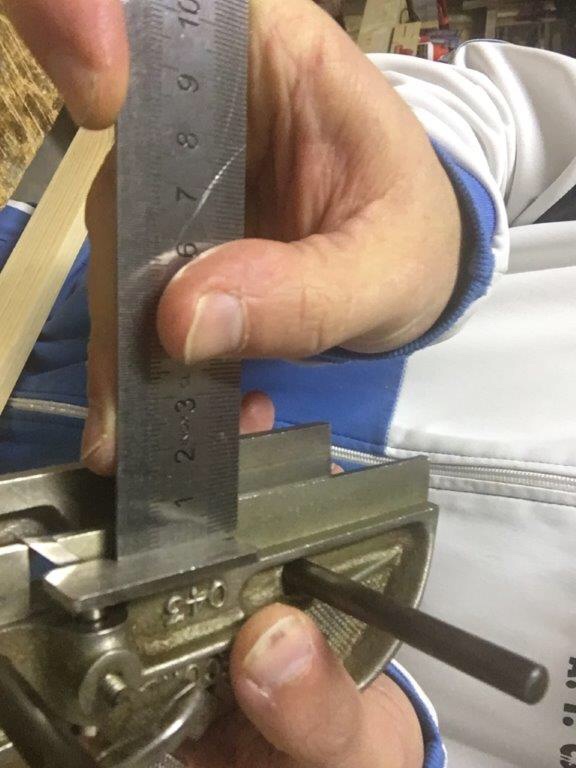 The plough plane work with the blade edge facing downwards. Usually the blades are sharpened at 30 degrees but you can also find sharpening between 25 and 30 degrees. The important thing is to never create a sharpening where the cutting edge is lower than the end of the same, otherwise it would be impossible to make the blade work in the wood. As mentioned, the blades are provided with a recess which allows the insertion of the depth adjustment wheel. Compared to the common blades of the planes the blades of the plough planes are very narrow and this, if on one hand allows a quick sharpening, on the other requires to pay special attention to create a sharp straight edge, especially if we sharpen freehand. If the cutting edge is skewed, this will affect the bottom of the groove. The woodworker Paul Sellers also recommends of slightly chamfering the sides of the blades (not near the cutting edge), so as to favor the planing action. The old blade models were already produced with a back of the blade narrower than the other, practically giving the blade a trapezoidal shape. Before sharpening the cutting edge, always check the flatness of the back of the blade, paying attention that it is straight or slightly concave. A possible convexity should instead be corrected through a clamping of the highest points and with the help of a lever in counterpressure. The sharpening can be done on diamond or other types of stone or on abrasive paper, turning the bevel downwards and holding the blade with the thumb and middle fingers and the index placed on the back. During the freehand sharpening the fingers of the other hand can support the movement allowing more control. Finally you can proceed to lapping with the abrasive paste on the strop as seen in the post on sharpening.