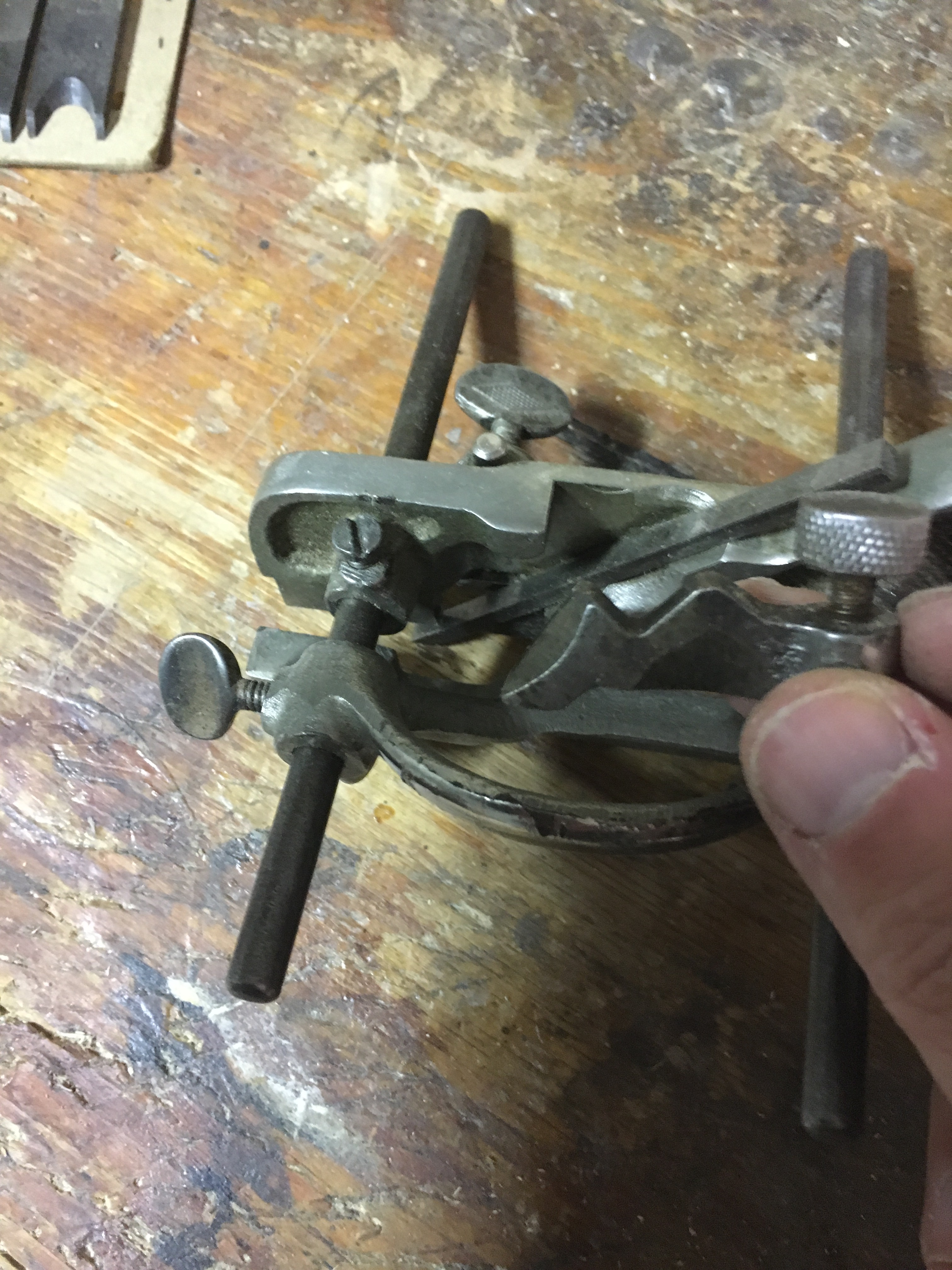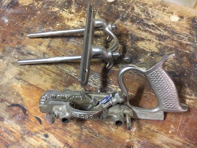 In the large panorama of the planes there are some that I would define special because they differ a lot from the typical shape of the plane and in how they work. Among these we have already talked about the router plane, a particular type of plane useful for woodworking such as leveling the bottom of a housing dado. In this post I would like to talk about another type of plane: the plough plane (plow plane in USA). This tool is often mistakenly referred to as a multi-function combination plane or, as some of the period catalogs reported, even as a universal plane, able to perform any planing work. Stanley 55 was an example. In reality, only with some particularly complex plough plane models it is actually possible to do a lot of work which however, in practice, is often not very effective and difficult to set up, as well as not being particularly performing. Referring then to the simpler versions of the plough plane (the more specific ones for particular works), these can essentially do two types of work in the wood: grooves along the grain (and sometimes across the grain) and rebates in the wood. In woodworking by hand this plane can create grooves in which it is possible to insert panels or glass (such as door and window panels or the back of some furniture), or bottom drawers, or make some dente canale joints (using the special blades useful to form the interlocking tooth and channel) and for various other uses where we need to obtain a groove where to house something. In the past it was a very widespread tool but today some power tools (such as the bench saw and the router) have actually replaced it, making the same work and faster. But I find that this tool still has its value in woodworking for the effectiveness and precision of working. At first sight its shape can intimidate a little. Its use is not very simple and it takes time to be set up properly and before you can make it work. But once you understand how it works, you immediately realize what a small engineering masterpiece it is. Even today, the few modern producers of this tool build the plough plane, tracing the original model, with very few variations, reflecting the goodness of its construction. The historic makers of this type of plane stopped to build it many decades ago but, as mentioned, some modern manufacturers, such as Veritas, offer an excellent plough plane even if the price is not properly cheap. Historical brands are, as always in this field, Record and Stanley. These two manufacturers have in the past produced many types of plough planes but four models on all have become very common. These are the Records (and Stanley) 043 and 044 and, among the so-called combination plough planes, the Stanley 45 and the Record 050. This, among the types in metal. The very first models of plough planes were however built of wood and among the most famous brands we can include Marples, Mathieson, and Sandusky, just to name a few. The purchase of a used ploughplane should therefore be directed towards the mentioned producers. The plough plane generally works along the grain of the wood, therefore along the side, creating grooves that are straight and parallel to the piece we are working on. Some particular types of plough planes can, however, also work across the grain. In fact, as we will see later, even some common plough planes can work across the grain if they have spurs, small cutting edges able to cut the fibers through the grain allowing to work also on this type of grain.