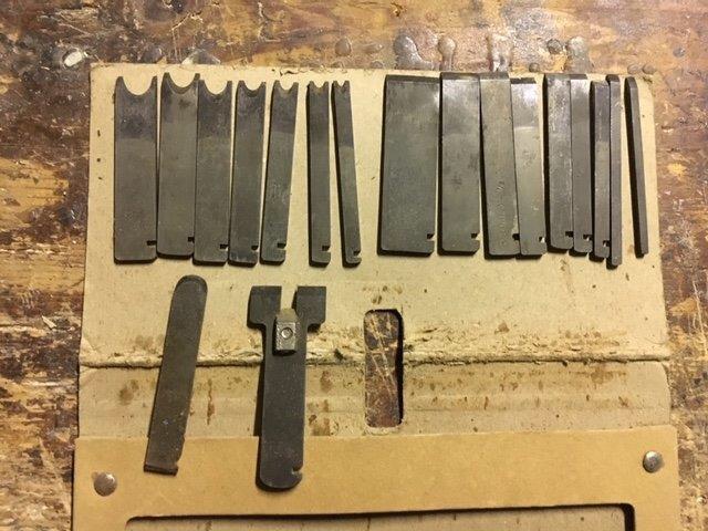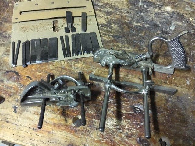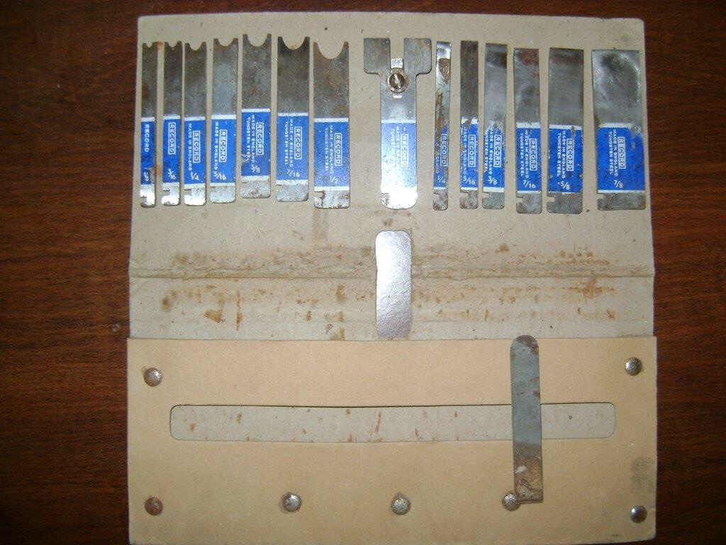 The metal plough planes were supplied with some blades of various sizes so as to be able to adapt to the various processes. The most common sizes are: 3 mm; 4.5 mm; 6 mm; 8 mm; 9.5 mm; 12.5 mm. The most commonly used blades were those with a ploughing shape, but the cobination plough planes were provided with many more blades of different shapes and sizes (tonguing, beading, ploughing, rounding) so as to be able to practice various processes and multiple mouldings (the Record 050A was provided with 17 cutters).