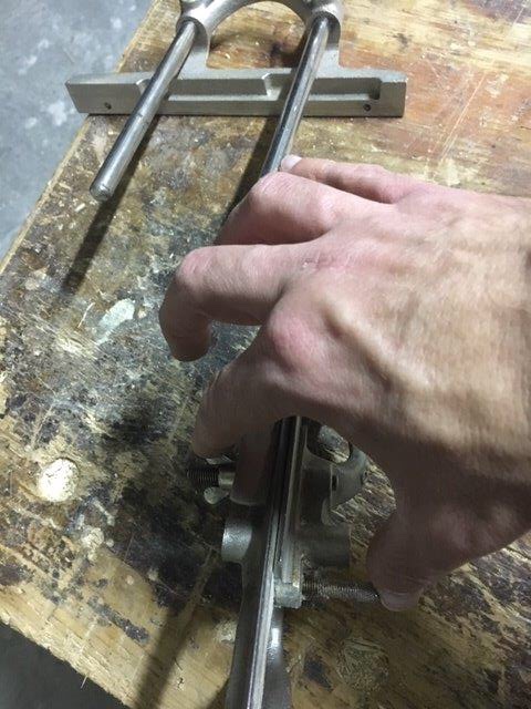 2) Si inserisce la guida parallela sul lato sinistro del corpo pialla (se destrorsi) attraverso le barre cilindriche di scorrimento. La guida e le barre si settano alla distanza voluta dal fianco del pezzo da lavorare e quindi si serrano le viti della guida e delle barre di scorrimento.