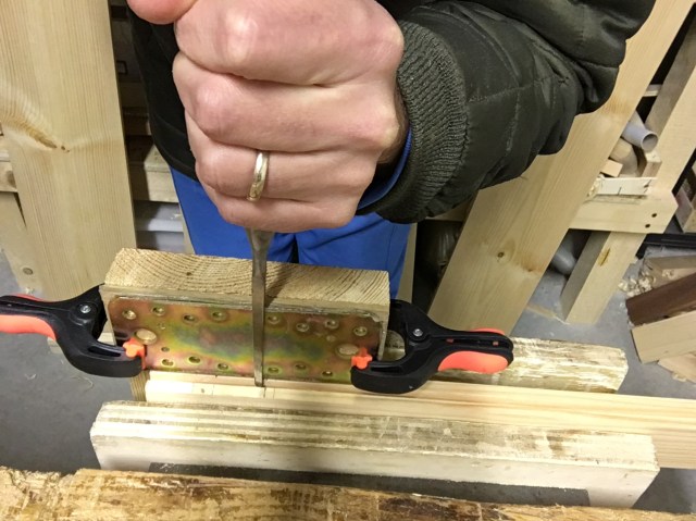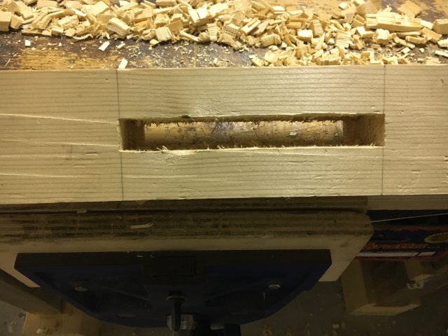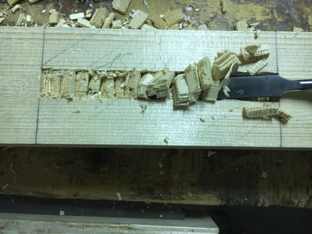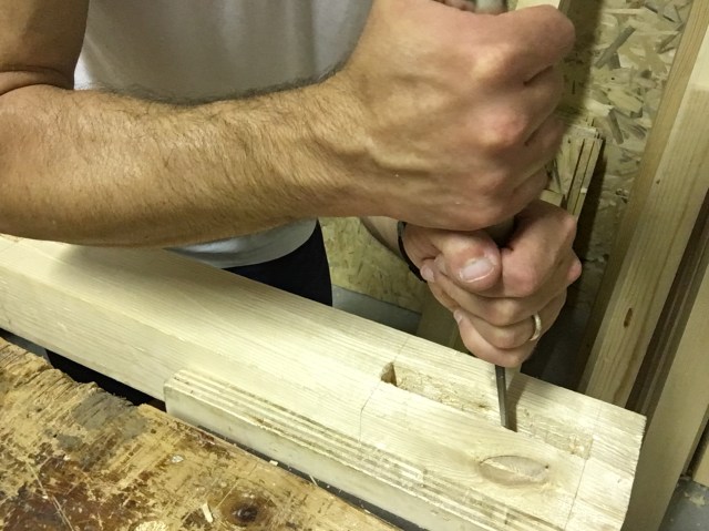 In questa fase non bisogna pulire le pareti della mortasa appena scavata. Questo per evitare che la mortasa divenga troppo larga. L’operazione potrebbe invece rendersi necessaria successivamente, per aiutare l’accoppiamento dei due pezzi.