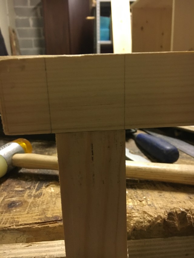 The traces just made delimit the cheeks of our tenon. With the pencil we can define the traces just made for better visibility during cutting.