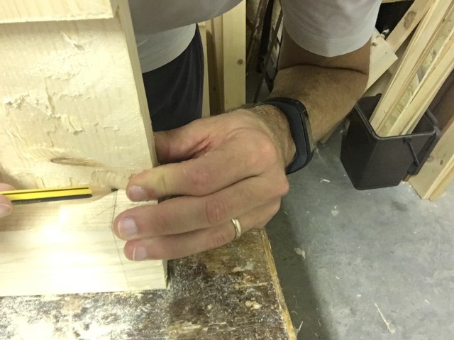 Si trasferisce la misura appena presa per tutta la lunghezza del tenone direttamente a mano o con l’ausilio della squadra.