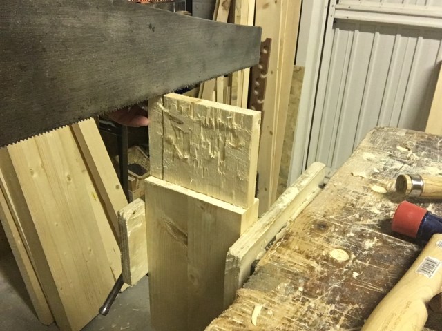 And finally we cut across the grain with a dovetail saw.