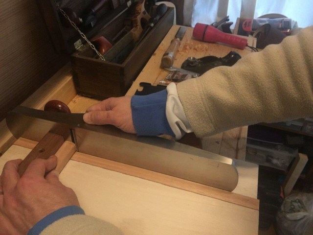 The bench hook (in Italian we could name it tavola per segare) is a support on which to easily cut pieces of small dimensions. They can be built in pairs so as to allow greater stability of the piece, especially if this is of long dimensions. As for the shooting board, the bench hook can be made in various shapes and sizes and provide some options that increase the versatility of use. In its basic version it looks like a board on which two fences are inserted. A lower batten that serves as a stop and a top fence that can provide the ability to make cuts even at 45 degrees. Below I report how I made my board.Material and measures: plywood base, length 42 cm. width 30 cm. 2 cm thick; top fence in pine wood, length 36 cm. width 4 cm. 4 cm thick; lower batten in hard wood, length 42 cm. width 2 cm. 2 cm thick. The realization is very simple.In the base in plywood (you can also use MDF, always better than solid wood for reasons of non-deformability) I made a groove a few millimeters deep and about 3 cm. from the edge where I inserted the fence, which I then glued and screwed in several places. You can proceed just with the glue up or just with only screwing the base (in my case the screws are placed under the base of the board). For greater stability I still preferred to combine the two things. The fence is made of pine (but it is preferable to use hardwood) and deliberately shorter than the base to allow sawing also externally and in support of the fence .In the fence, I then practiced with the tenon saw two cuts in opposite directions and 45 degrees to make oblique cuts and a perpendicular cut for straight cuts. It is preferable to make the guide cuts with the same saw that you plan to use normally later. It is not essential that the guide cuts are absolutely precise because they will still be finished later on the shooting board. The guide cuts must be made up to the base of the board. As the fence is glued and screwed under the base, the sections of the cut-out stop will not move from their seat once sawn. Finally I glued and screwed under the base a strip of hardwood that acts as a stop for putting in the bench vice or against the side of the bench eventually adding a strip of abrasive paper to increase the grip. Working is very simple. The lower stop is clamped in the vice and the piece to be cut is placed in correspondence with the upper fence. Insert the saw into the desired cutting site and proceed with sawing. During the action we try to keep the piece firmly and adhering to the fence and to cut as straight as possible, always keeping inside the cutting guide. Over time it is normal for the base to be worn near the guide cuts and gradually cut. However, this does not compromise the functionality of the board in any way but, for this reason, it is good practice to provide an abundant thickness of the board.