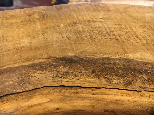 Come l’occhiolinato dell’acero, ha origine da un difetto del cambio che, in questo caso, genera gravi depressioni del legno. Si riscontra in legni come l’abete resinoso e il Kevazingo.