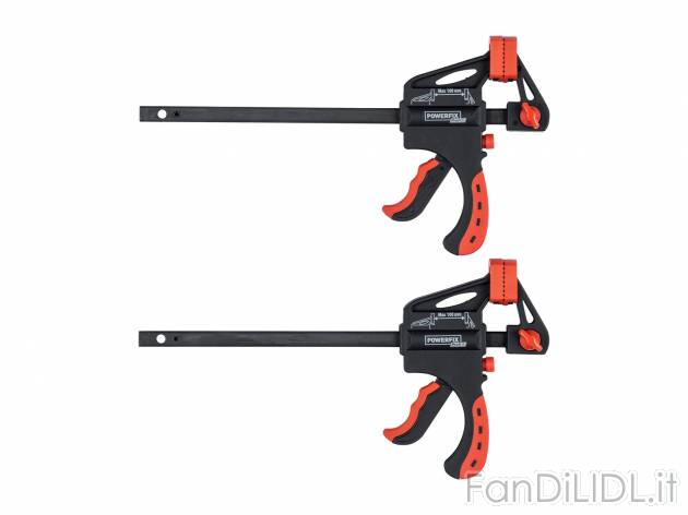 Gli strettoi rapidi sono facilmente riconoscibili per la particolare forma a pistola, come quella che si usa per le cartucce di silicone. Anche il funzionamento è del tutto similare. Si agisce sul grilletto che permette l’avanzamento a scatti della ganascia mobile e quindi non è possibile farla avanzare più velocemente. Come dice il nome, sono dotati di un sistema di sgancio rapido che permette di rilasciare immediatamente la presa. Altri lati positivi è che sono leggeri, si possono utilizzare con una sola mano e sono economici. Per un uso saltuario e per posizionare i pezzi vanno bene, ma per un uso intensivo e per esercitare una maggiore forza di trazione occorre affidarsi ad altro.