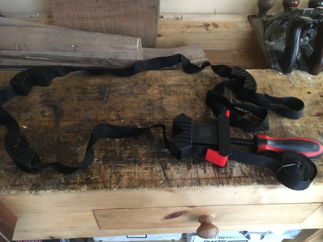 Band clamps. They are widely used in gluing large structures and furniture carcasses for which the use of normal clamps would be difficult. Once the tape is opened, it is wrapped around the structure, like a sort of harness. Then with the help of a screw tightening system the bandage is tightened. A very common variant is the tape press for frames. The tape is obviously of reduced dimensions and in its length some angles have been inserted, usually in plastic, which are positioned on the corners of the frame. Also in this case, once the corner pieces have been arranged, the belt is tightened using the usual screw system. Speaking of frames, there are also specific clamps to be applied on each corner, or you can use a particular type of clamp, marketed by Veritas, which involves the use of special threaded bars blocked by special bushings. It is not cheap but it is an absolutely valid and comfortable system and is also suitable for frames of considerable size, thanks to the special extensions. The only problem could be related to the length of the bars which, if used on small frames and if you have little space available, could get in the way. I post a link below where you can buy it.