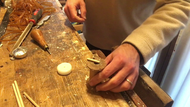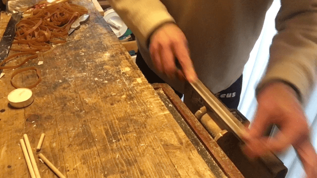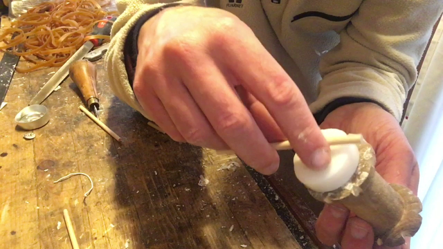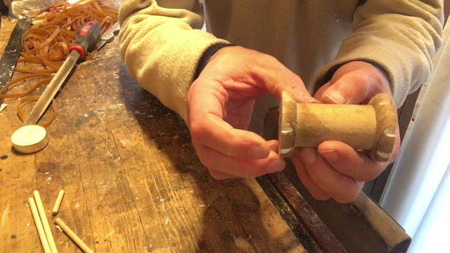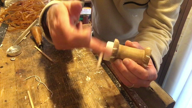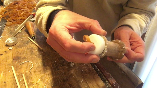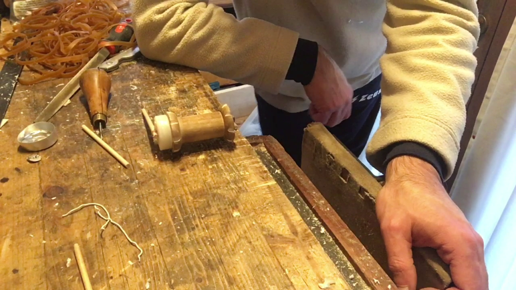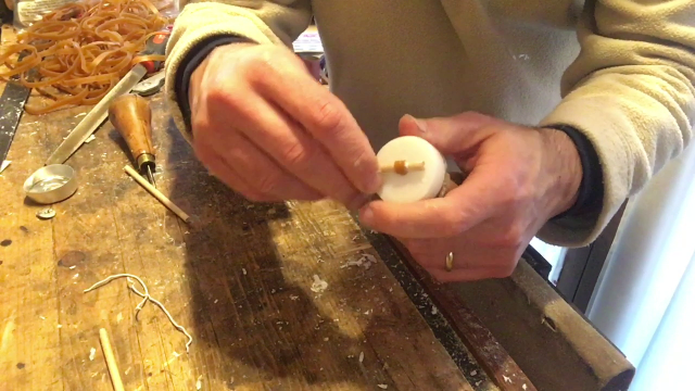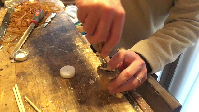 Quindi utilizzava un pezzetto di cera tagliato da una candela, dei fiammiferi ed un elastico. Il gioco a costo zero era pronto per la mia gioia. La versione che ho riprodotto è un tantino più evoluta ma non ho voluto tradirne lo spirito tradizionale. Di seguito alcune foto tratte dalla lavorazione e alla fine il link ad un breve filmato che ho messo su youtube.