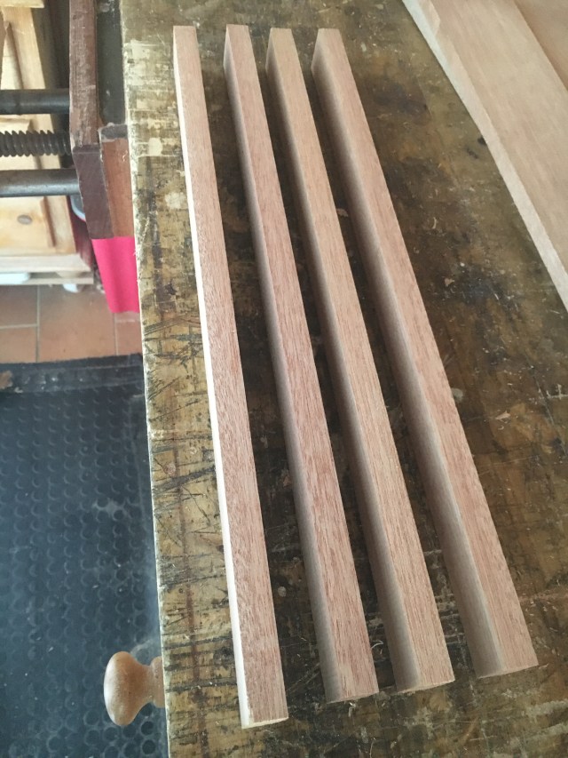 Nel mio caso da una tavola in legno massello ho ricavato i 4 listelli (che per comodità ho tagliato tutti alla stessa lunghezza), che andranno a comporre il telaio e che in seguito ho ridimensionato portandoli alle dimensioni effettive volute. In questa fase rifiniamo con cura i 4 listelli affinché abbiano tutti le stesse dimensioni sia in lunghezza che in larghezza e che le facce dei pezzi siano in squadra tra loro.