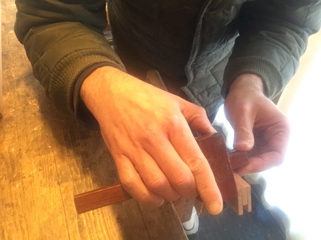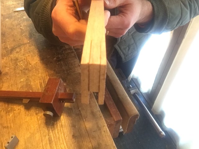 Data la ridotta larghezza del pezzo, nel mio caso lo scavo della mortasa è solo di 1 cm. Su ante di maggiori dimensioni ovviamente la profondità dello scavo sarà maggiore. Una volta preparate le mortase si procede a ricavare i tenoni dai traversi. In questa fase bisogna fare attenzione a non sbagliare le misure della lunghezza dei traversi.