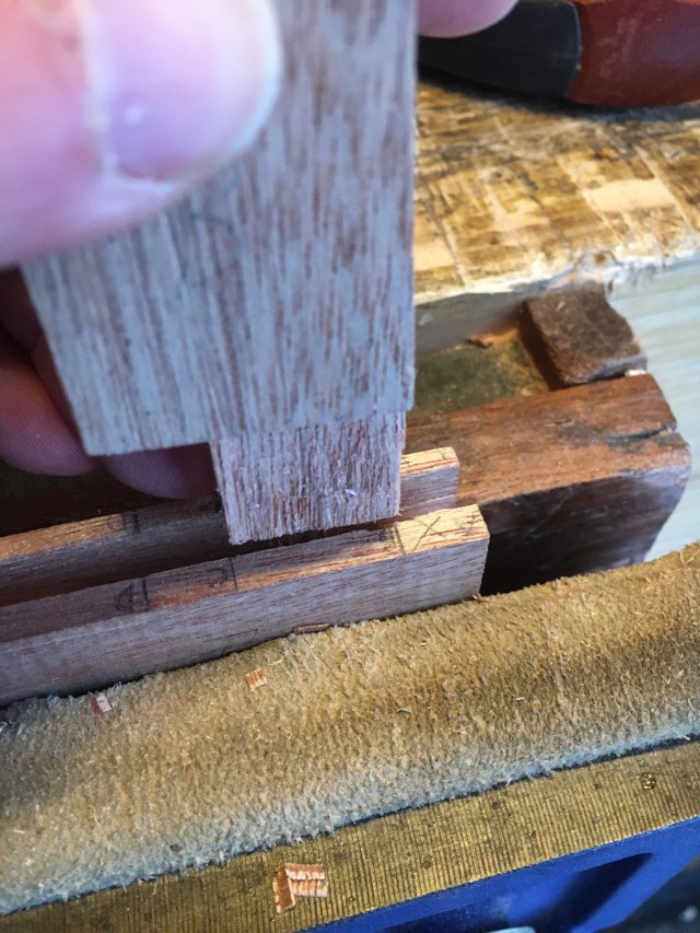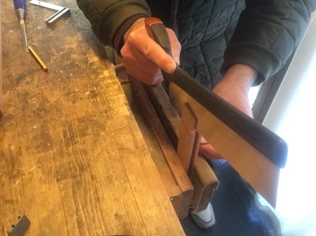 Infine si procede a segare le guance del tenone (avendo sempre cura di segare dritto), lasciando dentro di qualche decimo di millimetro (e quindi visibili), le tracce del truschino. Questo per permettere di effettuare le eventuali rifiniture necessarie in fase di incastro usando la router plane, la shoulder plane o gli scalpelli.