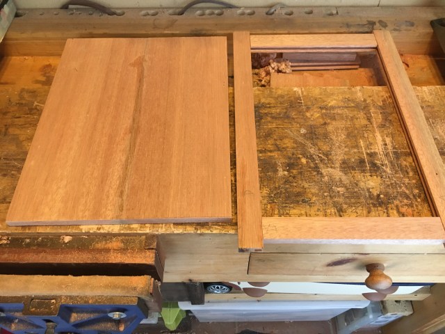 Tempo fa avevo parlato degli incastri tenone e mortasa. Un impiego diffuso di questo tipo di incastro lo si trova nella realizzazione dei telai delle ante. Quando si parla di ante ci si riferisce solitamente a sportelli di medie o grosse dimensioni che, agganciati a delle cerniere, permettono la chiusura in battuta di un mobile o di un armadio. Di ante si parla anche per le finestre e per le porte, mentre si é soliti fare ricorso al diminutivo antina quando lo sportello è di dimensioni ridotte. In questo articolo, per comodità, userò le parole anta e antina indifferentemente. La realizzazione di un’anta è estremamente personalizzabile. Si può utilizzare il legno massello o del semplice legno derivato (come il multistrato o il MDF). Si può fare una semplice anta senza alcun telaio oppure costruirne una con telaio e pannello interno (quest’ultimo con o senza bugnatura). Il pannello interno a sua volta può essere costituito da un pezzo unico oppure suddiviso in doghe e fatto di qualsiasi materiale, quindi non solo legno ma anche vetro, plexiglas, ecc. Anche il telaio è personalizzabile e può essere fatto con incastri a tenone e mortasa oppure con unioni ad angolo, sul tipo delle cornici (ugnatura) e può essere impreziosito con bordature, scanalature ed altro. Detto questo, vi mostrerò in questo articolo il metodo tradizionale di costruzione di un’antina, prendendo spunto dalla realizzazione di un piccolo sportello per una scatola. Il telaio è in legno massello con incastri tenone e mortasa e il pannello interno, sempre in massello, è stato inserito in una scanalatura che segue tutto il perimetro. impiegando per la sua realizzazione solo utensili manuali. Questo metodo classico è tuttora ampiamente impiegato per la realizzazione di porte, finestre, persiane e molto altro. Volutamente non entrerò nello specifico dell’esecuzione dell’incastro tenone e mortasa e della realizzazione delle scanalature. Per questi approfondimenti vi rimando ai seguenti link.