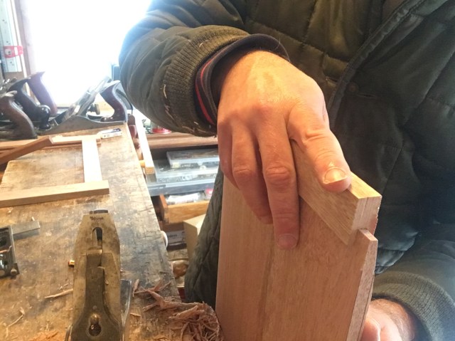 Una variante molto usata è quella con il dente (haunch), utilizzata soprattutto per ante di maggiori dimensioni (e di cui metterò alcune foto a fine articolo). Nel mio caso, dovendo fare solo un semplice sportello per una scatola, ho fatto il semplice tenone.