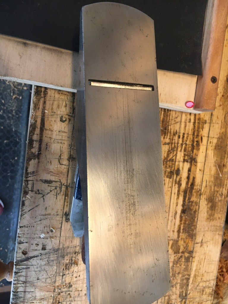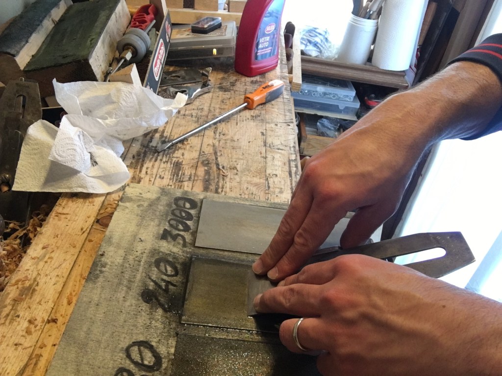 Personalmente non amo gli interventi troppo invasivi sulle pialle vintage. Mi piace mantenere alcuni difetti e quella patina depositata dal tempo che ne testimonia gli anni vissuti. Una volta affilata la lama e controllato il controferro (per questa operazione vi rimando al seguente link Affilare gli scalpelli e le lame delle pialle / Sharpening chisels and plane irons) accostiamoli ponendo il controferro ad una distanza compresa tra 1 e 2 mm. dal tagliente della lama e avendo cura di allineare bene i fianchi tra loro, facendo attenzione a non far toccare il tagliente affilato al controferro.