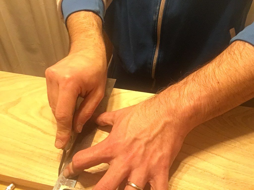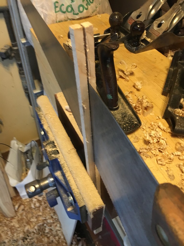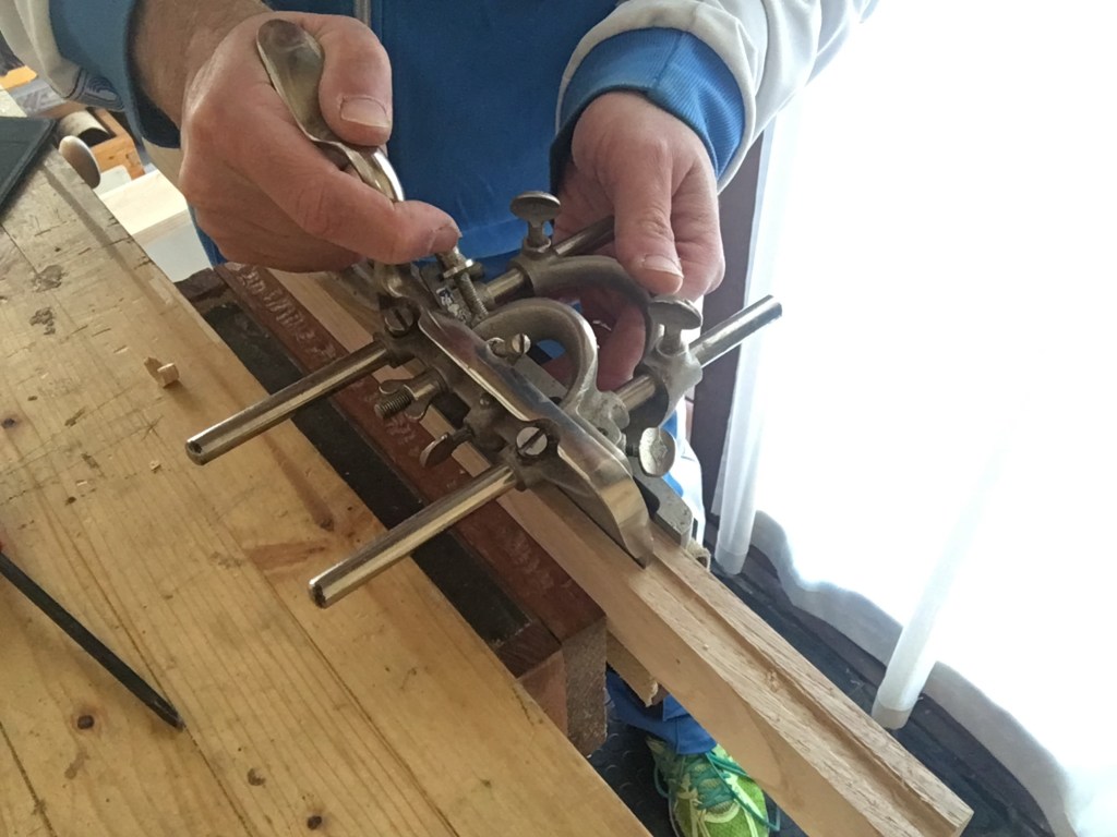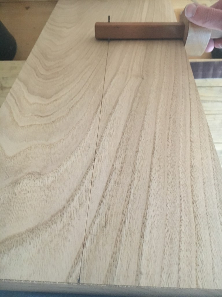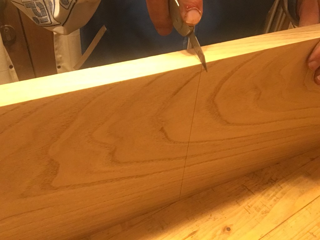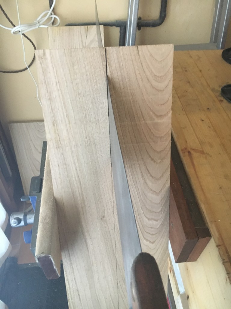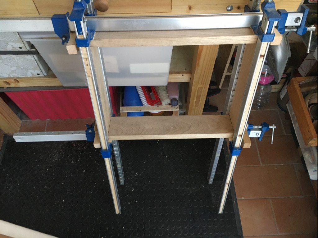 È un manufatto di qualche tempo fa. Si tratta di una piccola vetrina bacheca dotata di gancetti per appendere orologi ma potrebbe prestarsi anche come vetrina portachiavi. Può essere sia appesa al muro che appoggiata su un mobile in posizione capovolta ovviamente ruotando i gancetti. Realizzata in legno di castagno di spessore di circa 2 cm. e pannello posteriore in multistrato di pioppo di 1 cm. di spessore. La finitura è a olio e cera. Le misure esterne sono 50 cm. di altezza, 40 cm. di larghezza e 11 cm. di profondità. La vetrina è dotata di un sistema di illuminazione in modalità permanente / spenta / automatica ad apertura dell’anta. Gli incastri della carcassa sono a coda di rondine mentre quelli del telaio dello sportello a tenone e mortasa. Il vetro è di 4 mm. di spessore ed è inserito in un canale praticato nel telaio. Foderato con panno in velluto color bordeaux e munito di serratura con chiave e chiusura a gancetto. E’ stato un lavoro molto interessante in quanto mi ha dato modo di utilizzare molte delle tecniche viste fino ad adesso, Di seguito inserisco alcune foto della lavorazione, numerate in ordine sequenziale.