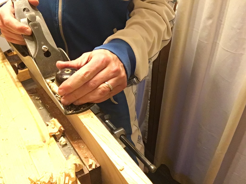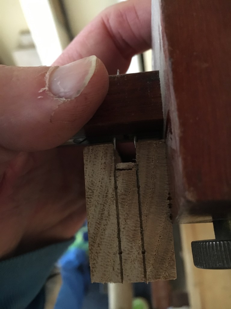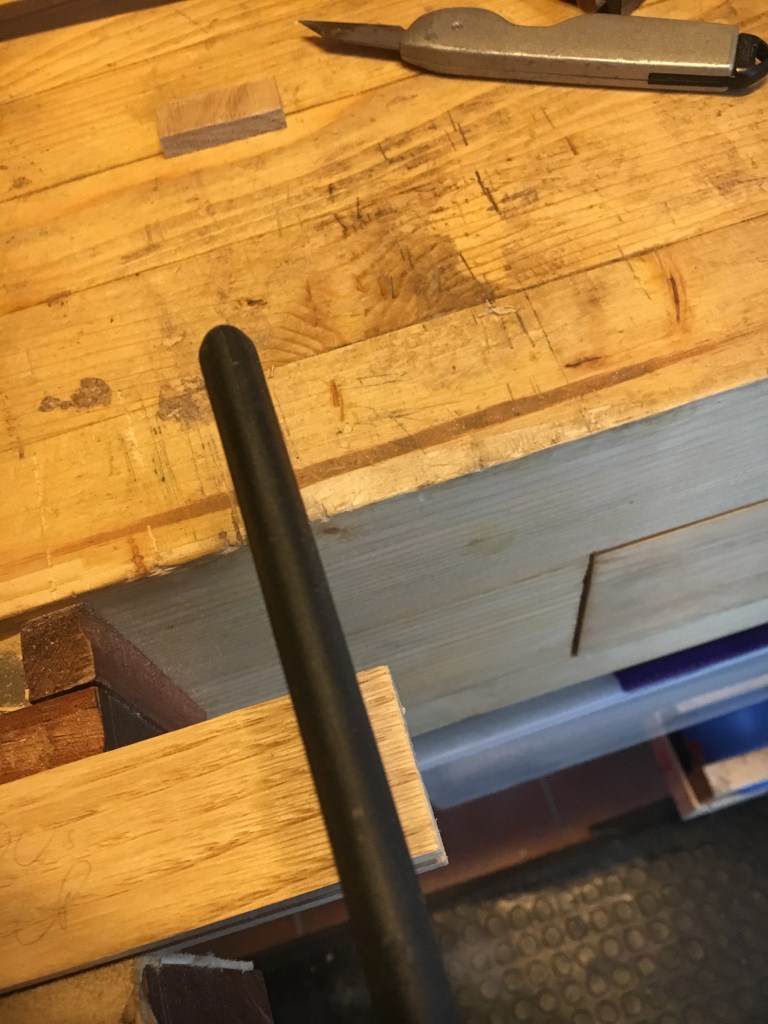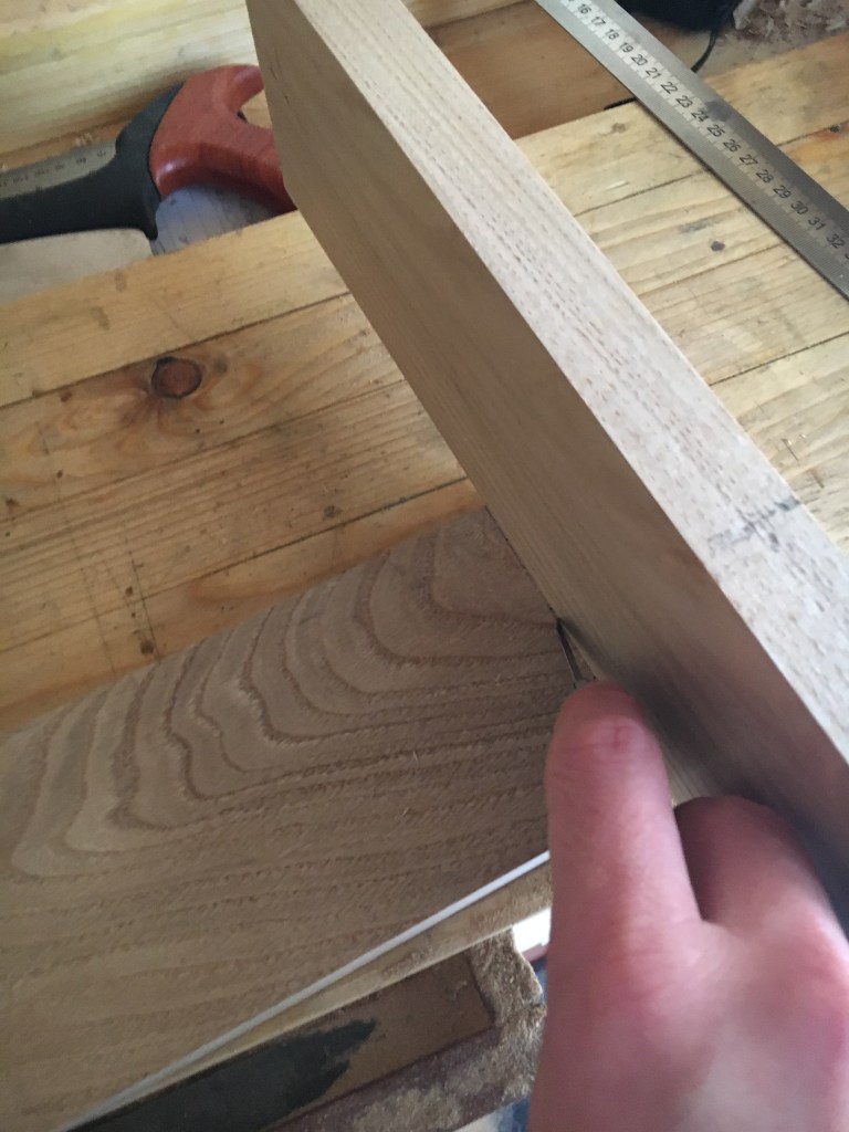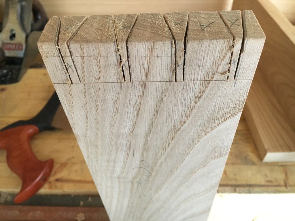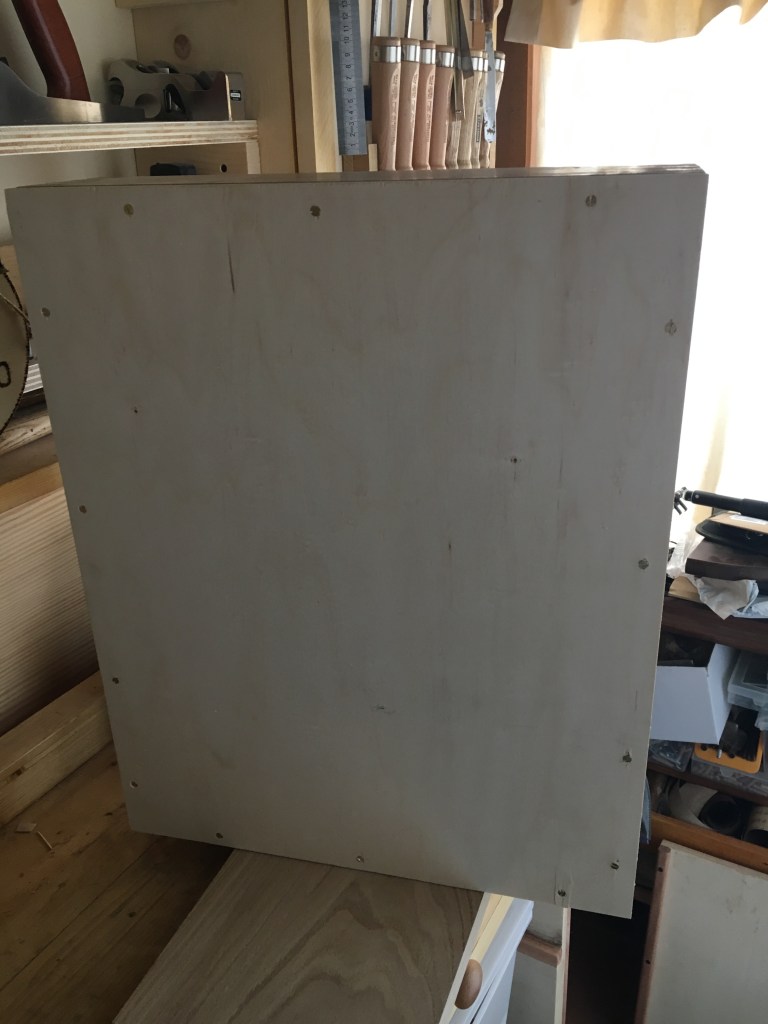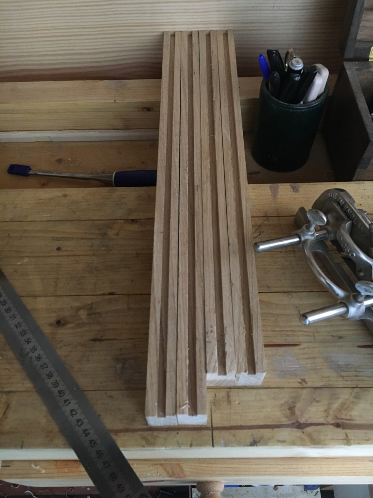 È un manufatto di qualche tempo fa. Si tratta di una piccola vetrina bacheca dotata di gancetti per appendere orologi ma potrebbe prestarsi anche come vetrina portachiavi. Può essere sia appesa al muro che appoggiata su un mobile in posizione capovolta ovviamente ruotando i gancetti. Realizzata in legno di castagno di spessore di circa 2 cm. e pannello posteriore in multistrato di pioppo di 1 cm. di spessore. La finitura è a olio e cera. Le misure esterne sono 50 cm. di altezza, 40 cm. di larghezza e 11 cm. di profondità. La vetrina è dotata di un sistema di illuminazione in modalità permanente / spenta / automatica ad apertura dell’anta. Gli incastri della carcassa sono a coda di rondine mentre quelli del telaio dello sportello a tenone e mortasa. Il vetro è di 4 mm. di spessore ed è inserito in un canale praticato nel telaio. Foderato con panno in velluto color bordeaux e munito di serratura con chiave e chiusura a gancetto. E’ stato un lavoro molto interessante in quanto mi ha dato modo di utilizzare molte delle tecniche viste fino ad adesso, Di seguito inserisco alcune foto della lavorazione, numerate in ordine sequenziale.