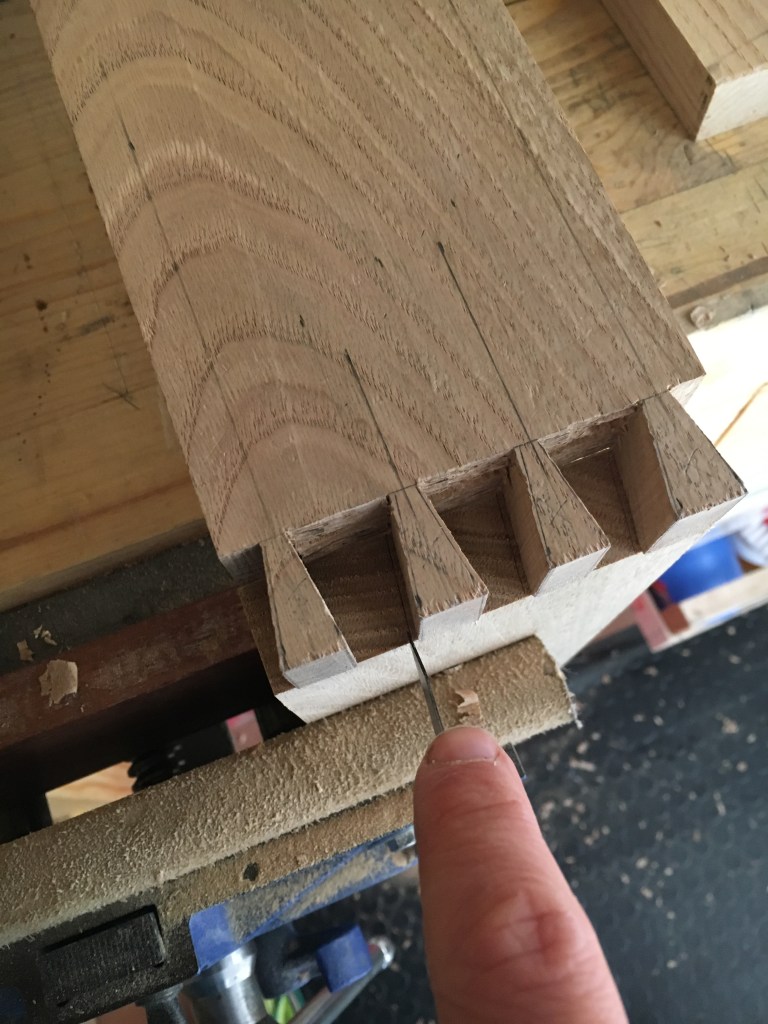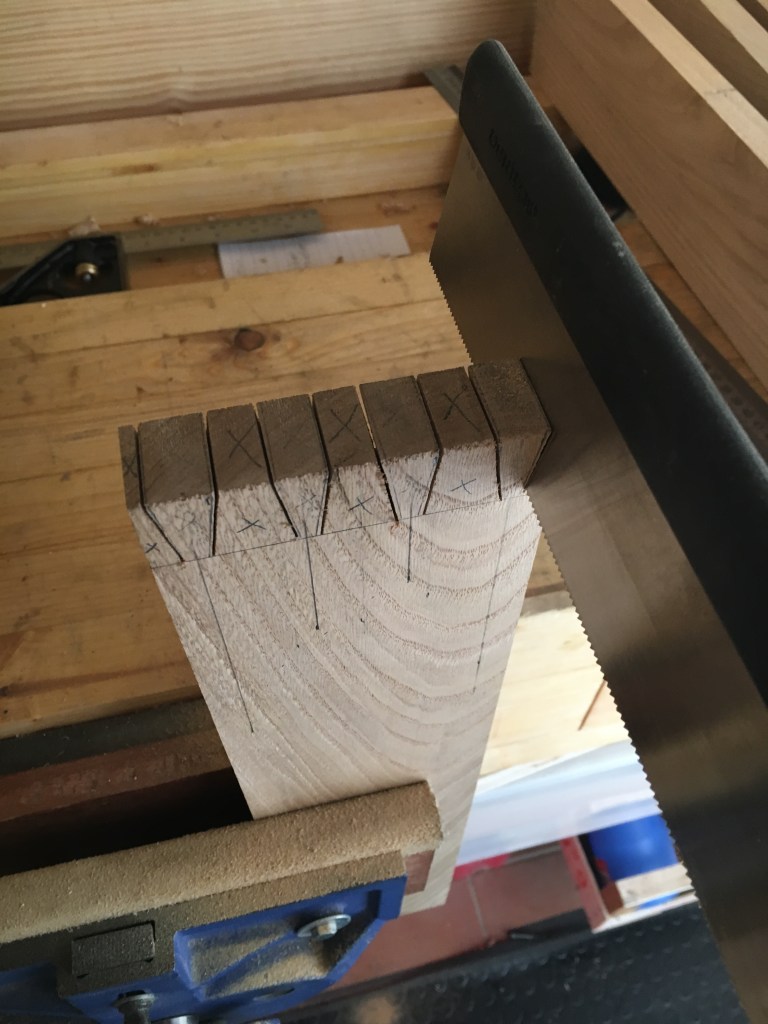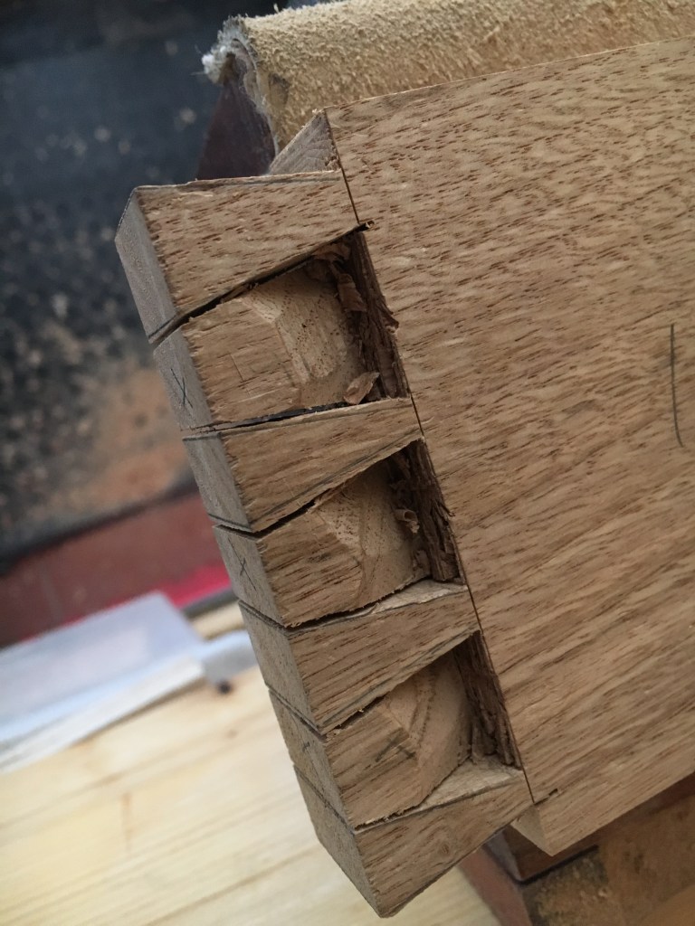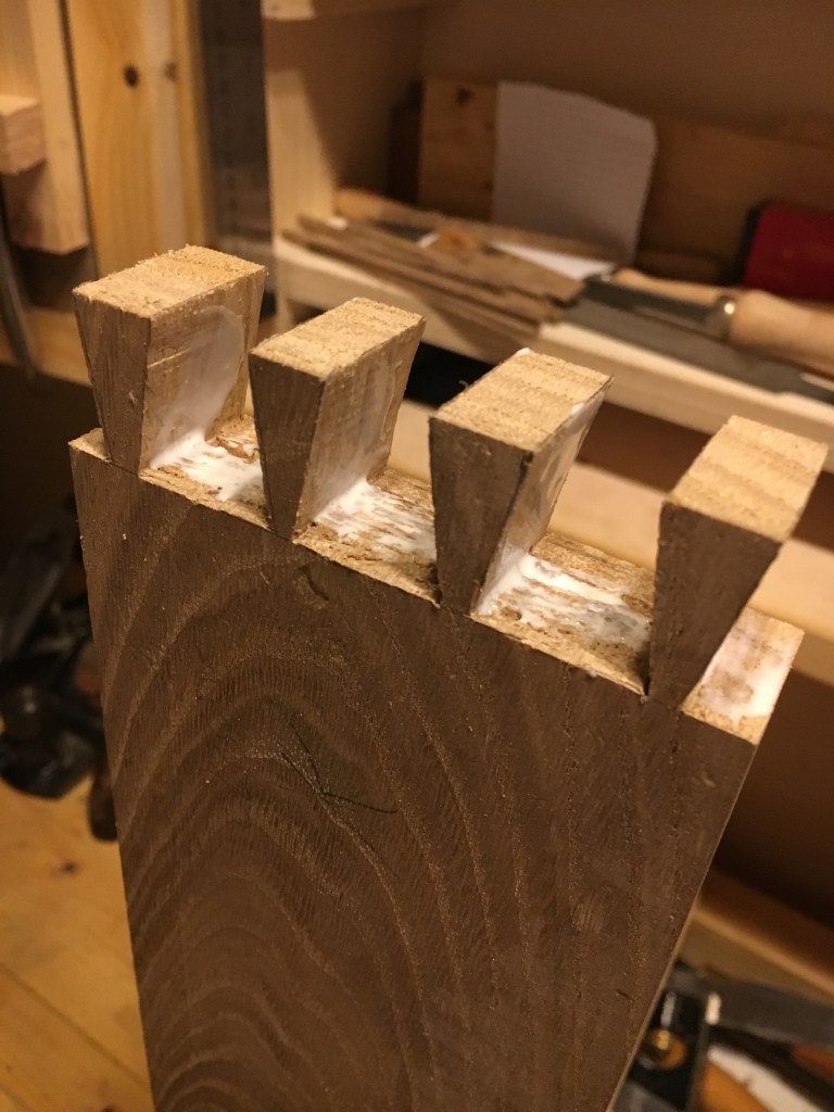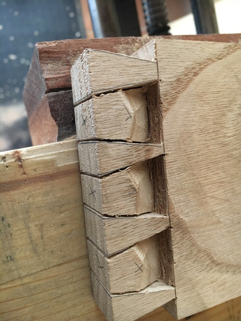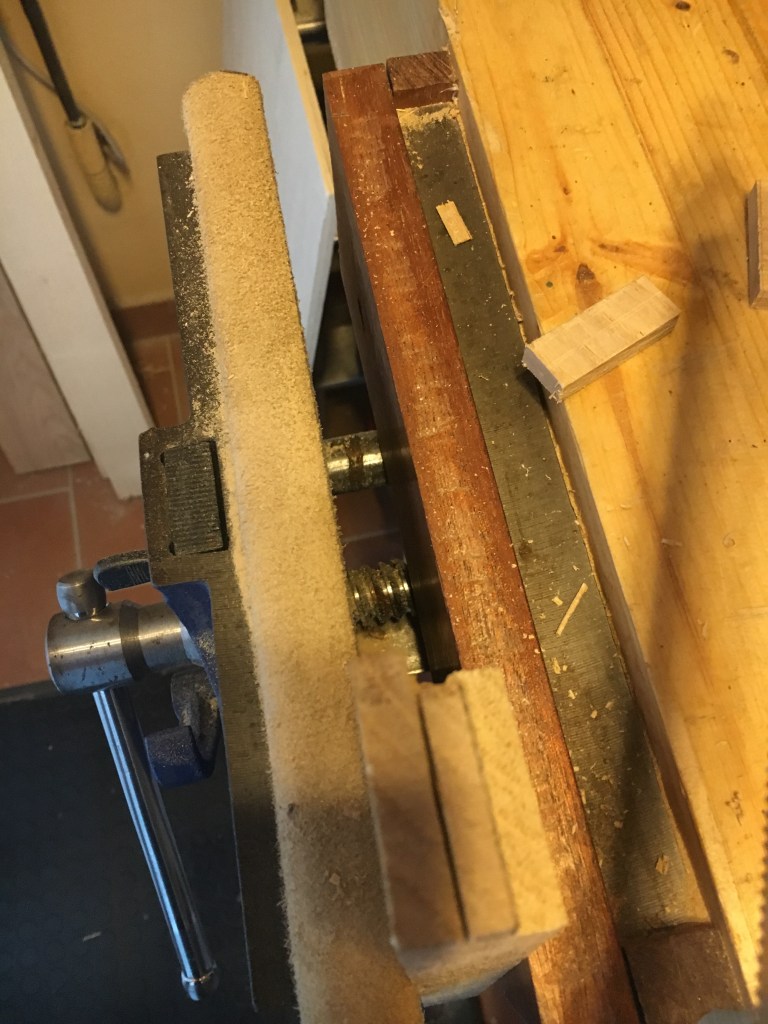 It’ s a work from some time ago. It is a small showcase with hooks for hanging watches but it could also be used as a keychain showcase. It can be hung on the wall or placed on a piece of furniture in an inverted position by rotating the hooks. Made of chestnut wood of about 2 cm. thick and 1 cm. poplar plywood rear panel. The finish is with oil and wax. The overall measurements are 50 cm. high, 40 cm. wide and 11 cm. depth. The showcase is equipped with a lighting system in permanent / off / automatic mode when the door is opened. There are dovetail joints in the carcass while the door frame are mortise and tenon joints. The glass is 4 mm. thick and is inserted in a groove of the frame. Finished with a velvet cloth and fitted with key lock and hook closure. It was a very interesting work because I had the opportunity to practice with various techniques. Above I insert some photos of the work, numbered in sequential order.