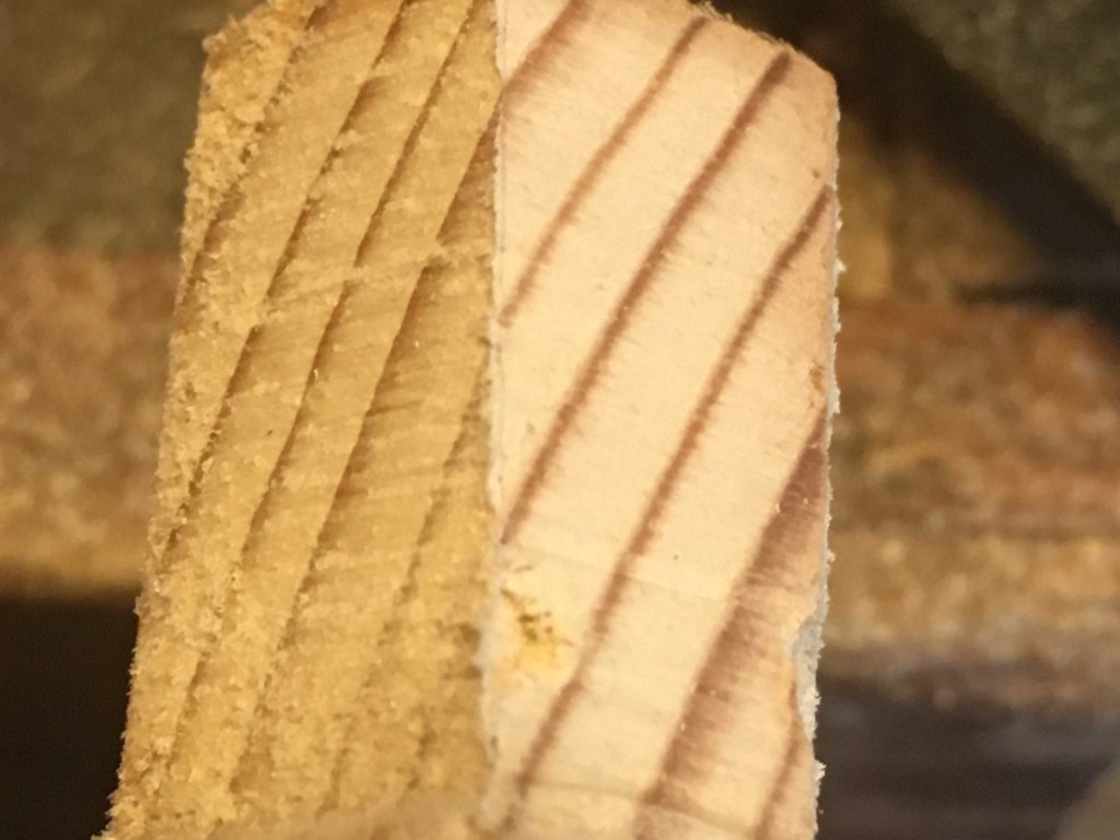 They are held by grasping the handle with the dominant hand and the tip with the other hand. Let’s start with firm strokes, applying a lot of downward pressure and presenting the rasp at an angle of approximately 40 degrees to the direction of movement. We always work in favor of the grain and never against the grain, to avoid tearing. If we use round rasps it is good practice to rotate the rasp slightly during the movement. We end up with lighter and lighter passes.