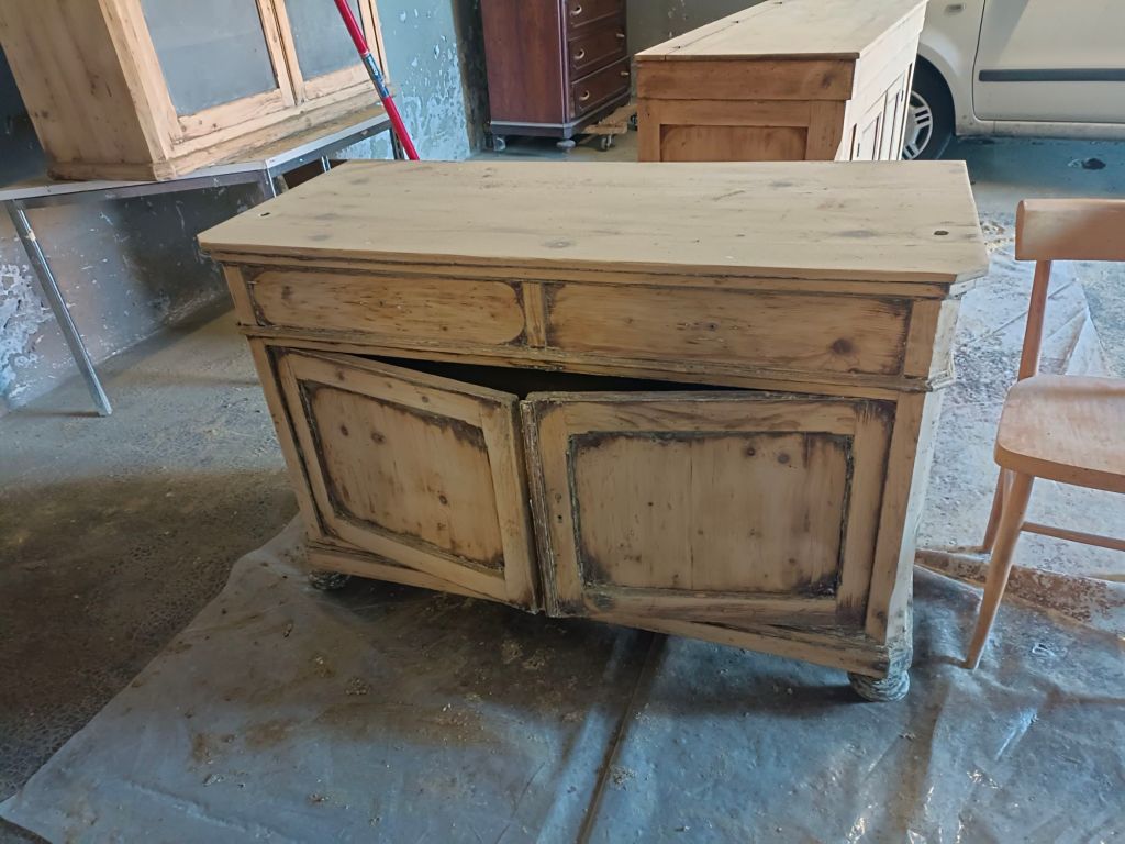 Di recente mi è capitato di dover recuperare una credenza in abete anni 60/70, riverniciata con due mani di vernice poliuretanica, una madia in abete, sicuramente più antica e mai verniciata e un tavolinetto, anch’esso degli anni 60/70 in legno di ciliegio, impiallacciato e verniciato.