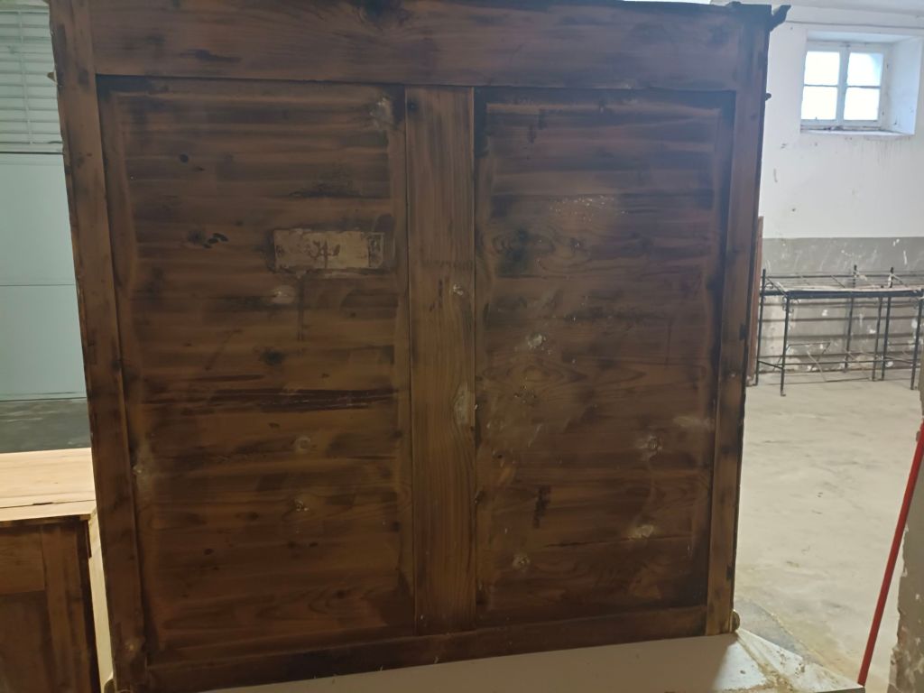 La credenza presentava ottime soluzioni costruttive ma la finitura lasciava molto a desiderare, anche se all’epoca andava molto di moda. Il committente mi ha chiesto di riportare a legno grezzo sia la credenza che la madia. Quest’ultima non aveva alcuna finitura se non la patina che il tempo gli aveva regalato. Una volta riportati i mobili a legno grezzo, una mano di finitura protettiva, scurita con le aniline, avrebbe donato un’estetica più in linea con i nostri tempi.