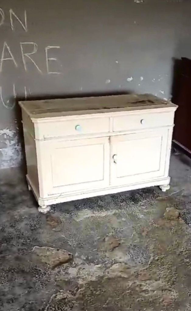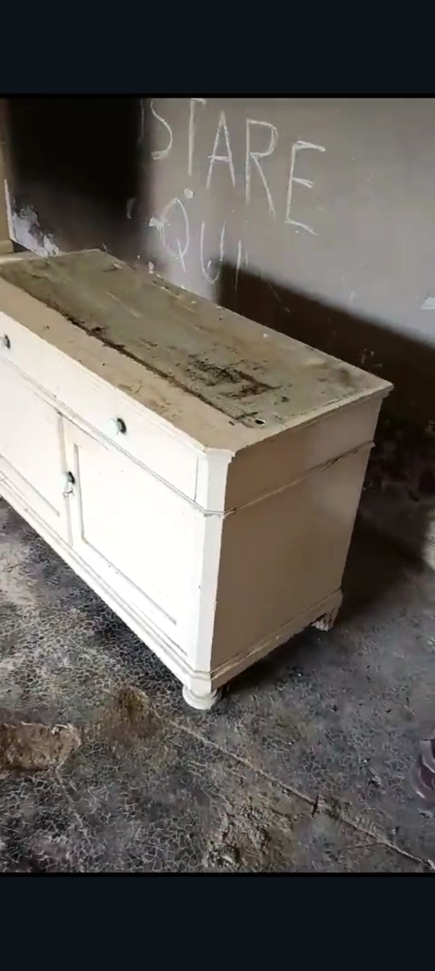 La madia, seppur più vecchia, necessitava di molti meno interventi. Non presentava finiture da sverniciare, rotture, né tarli ma solo l’ingiallimento dovuto al tempo. É bastato levigare a fondo con la rotorbitale e poi fare lo stesso trattamento sbiancante visto sopra per poi applicare la stessa finitura protettiva satinata con aggiunta di aniline color teak. A causa dei tanti anni di esposizione all’aria, senza protezioni, la madia non è venuta così chiara come la credenza, ma penso che questo sia anche il bello del legno vecchio.