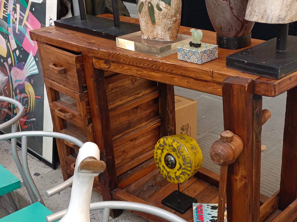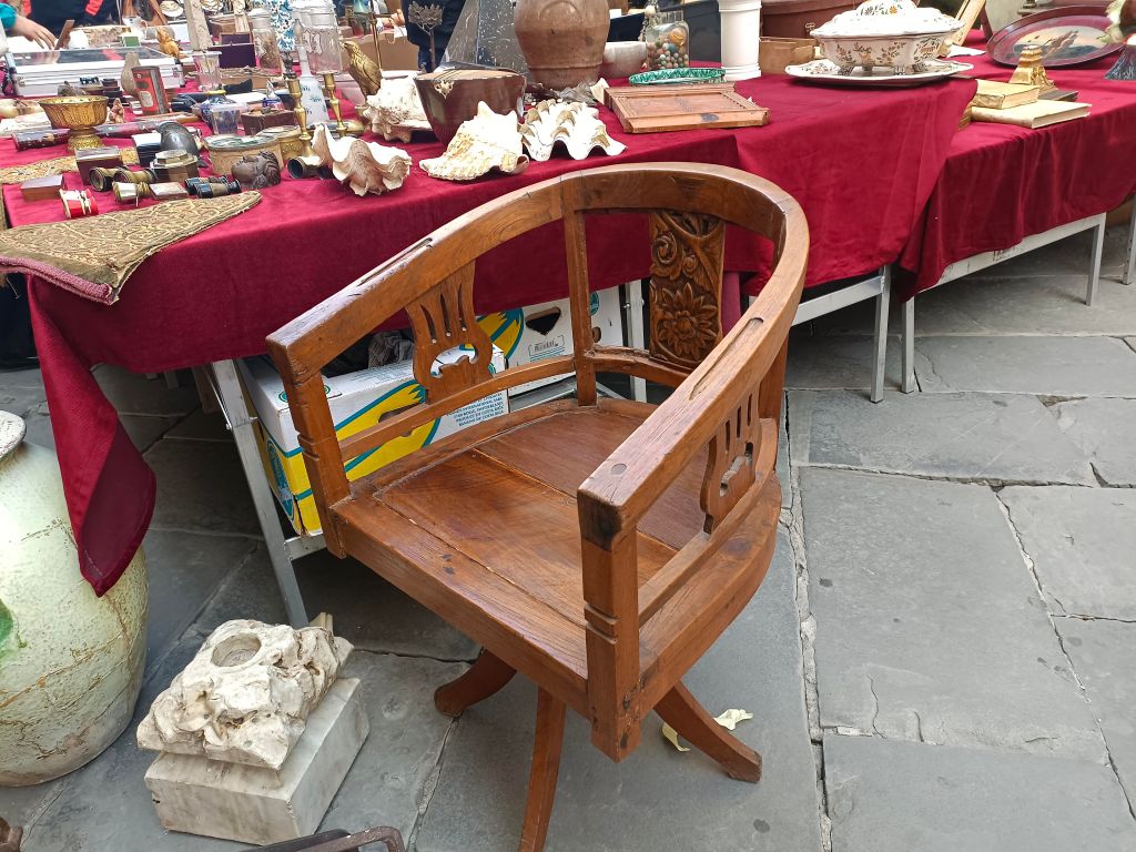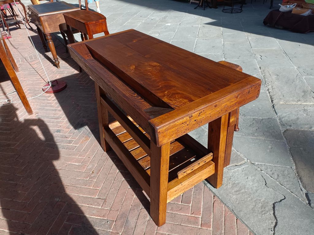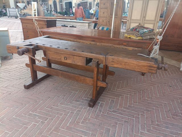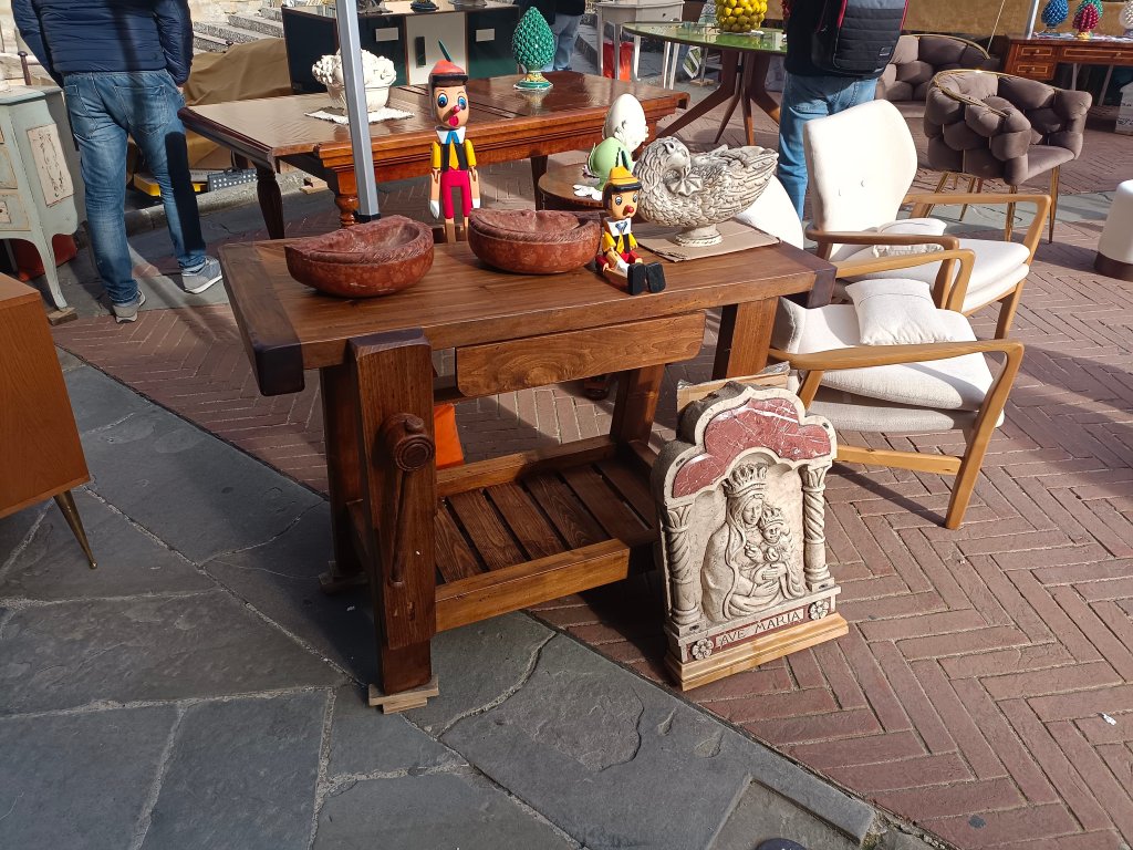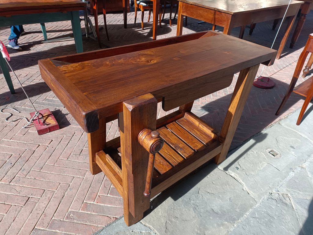 Arezzo é di per sé una città che ospita molti venditori d’arte e ovviamente, da appassionato di falegnameria e mobili in generale, mi sono concentrato più che altro sui pezzi di arredamento in legno. Ho notato però che l’attrezzatura specifica per falegnameria resta merce più rara, e magari con prezzi che, pur rispecchiando la qualità, sono oggettivamente elevati, come pomelli, maniglie e serrature. Ho trovato pezzi di ottima fattura, in particolare quelli esposti in Piazza Grande, come tavoli ristrutturati e banchi da falegname (anche da scuola) d’epoca, che ne sono la prova.
